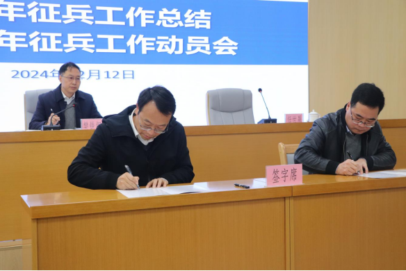 党委副书记任世晟总结了学院2024年征兵工作开展情况并对2025年征兵工作做了具体安排部署,与系部代表签订了《2025年大学生征兵工作目标责任书》。