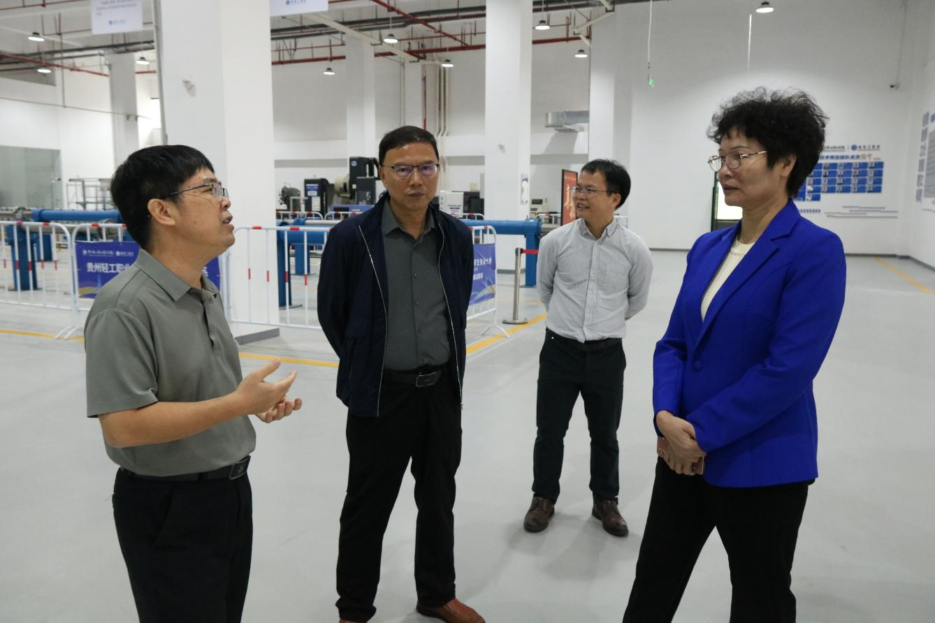 黄永春一行还参观考察了机电工程系大数据+智能新能源汽车产教融合创新基地、贵州先进电池与材料工程研究中心,信息工程系大数据开放型产教融合实训基地、中软国际大数据产业学院,以及轻工化工系贵州山地特色水果及其制品工程研究中心、果酒啤酒生产车间和智慧酿造白酒生产车间。各考察点负责人就建设情况、成果应用及人才培养模式等内容作了详细介绍。