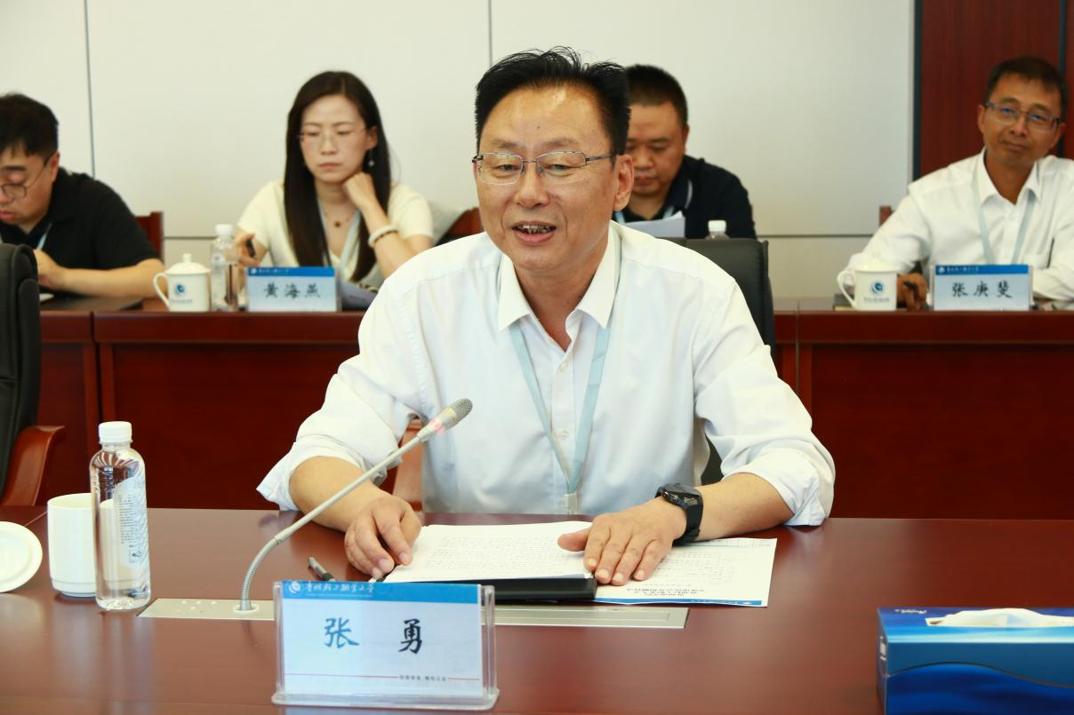 座谈会上,张勇在致辞中对贵州商学院一行的到来表示热烈欢迎。他指出,贵州商学院在商科人才培养方面成绩斐然,希望通过两校的交流互鉴,深入学习贵州商学院在应用型人才培养、学科建设、科学研究、中外合作办学、教育质量保障与评估监测等方面的宝贵经验。