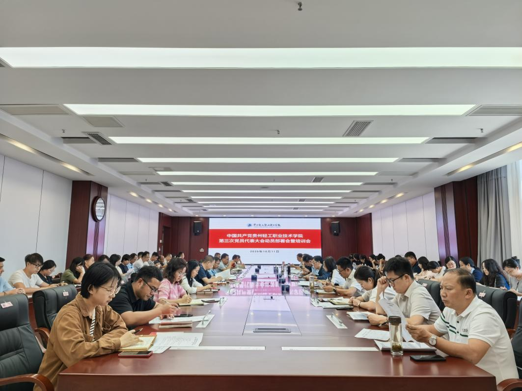 10月11日下午,学校在合一楼323会议室组织召开中国共产党贵州轻工职业技术学院第三次党员代表大会动员部署会暨培训会。学院党委书记张勇出席并讲话,党委副书记、院长杨天仪主持会议。其他院领导、各党总支(直属党支部)书记、党支部书记、党委换届筹备工作专班成员、各党总支(直属党支部)联络员参加会议。