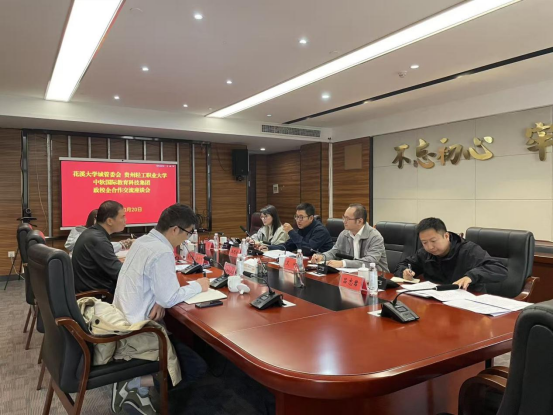 2025年10月20日下午,贵安新区花溪大学城管理委员会、贵州轻工职业大学、中软国际教育科技集团政校企合作交流座谈会在花溪大学城数字经济产业园9号楼9楼会议室顺利召开。贵安新区花溪大学城党工委委员、管委会副主任陆秀峰主持会议,学院党委委员、副院长王珂佳、中软国际教育科技集团助理总裁文斌参会。