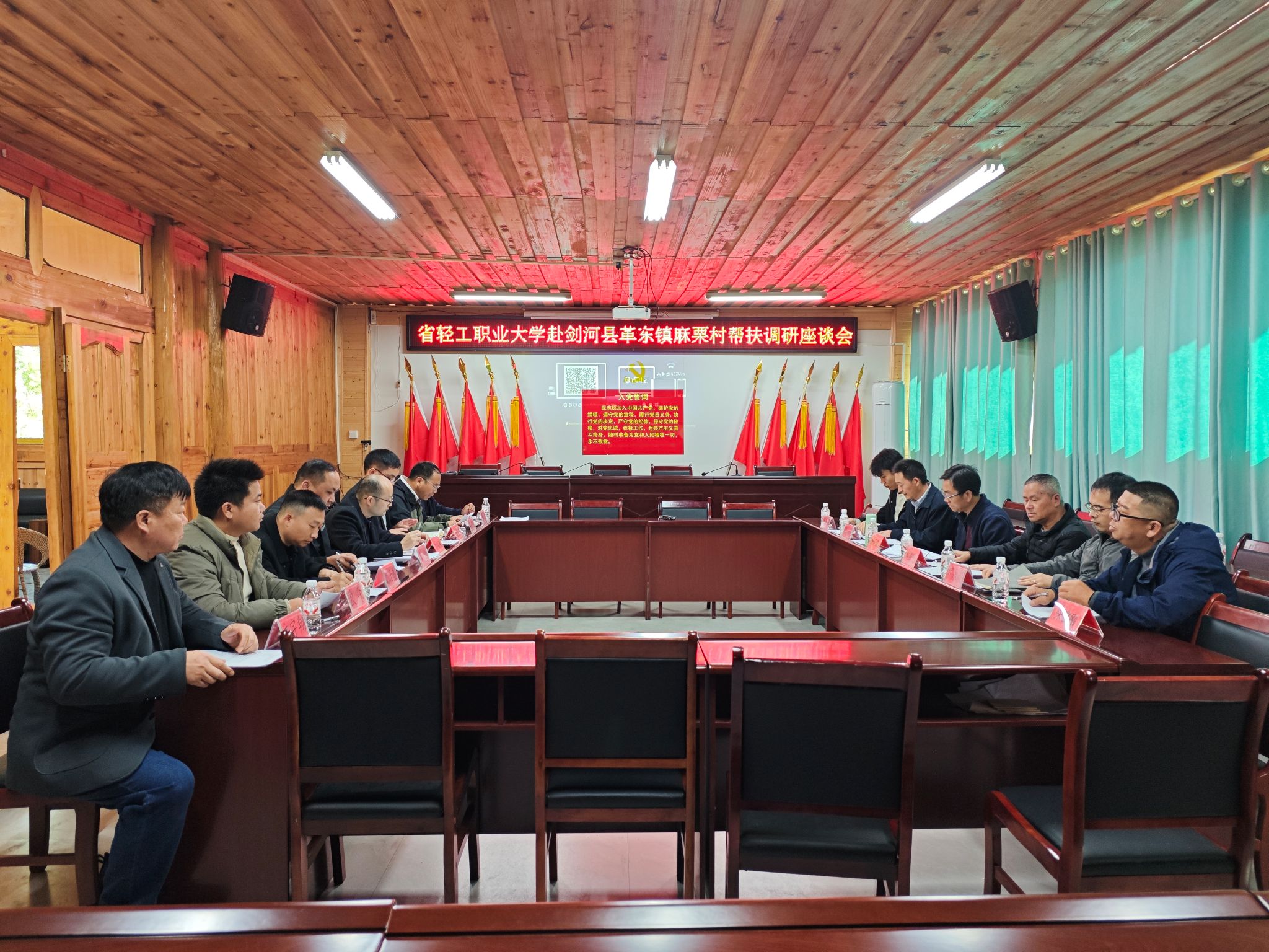 在麻栗村召开的乡村振兴帮扶工作座谈会上,学院派驻麻栗村第一书记邓志刚详细汇报了驻村以来在基层党建、产业发展、民生保障、乡风文明等方面的工作推进情况,分析了当前帮扶工作中存在的短板弱项,并汇报了下一步针对性推进举措。与会校地双方同志围绕产业提质、人才培育、资源整合等关键议题深入交流,凝聚帮扶共识。