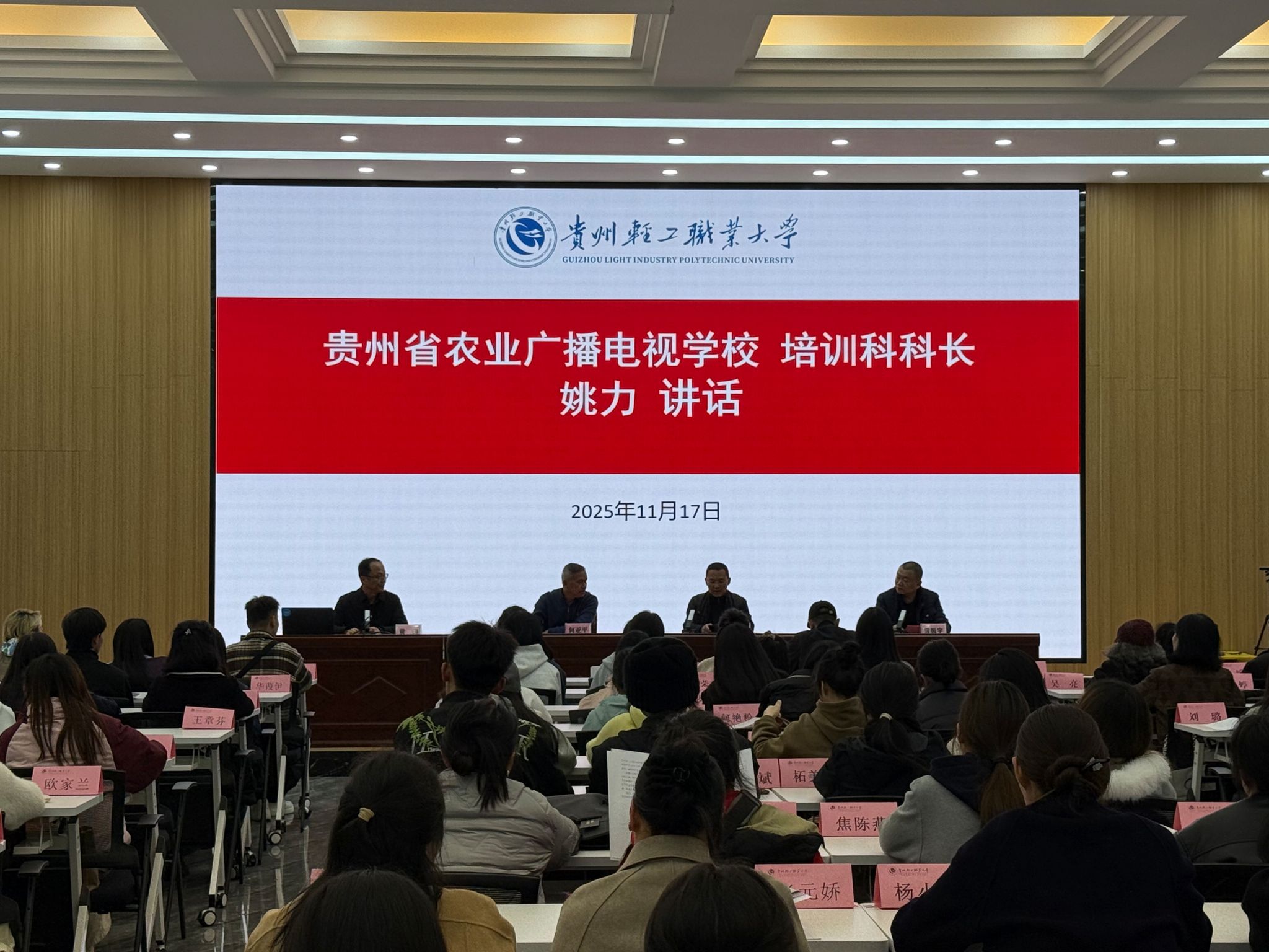 2025年11月17日下午,由贵州省农业农村厅主办、贵州轻工职业大学承办的“2025年贵州省蜡染工艺产品、苗绣工艺产品高素质农民培育班”开班仪式在贵州轻工职业大学骋怀楼一楼培训教室举行。本次培训聚焦蜡染与苗绣两大非物质文化遗产项目,旨在传承民族工艺,赋能乡村文化振兴,培育一批懂技艺、善经营、会管理的高素质农民,助力贵州特色产业发展。