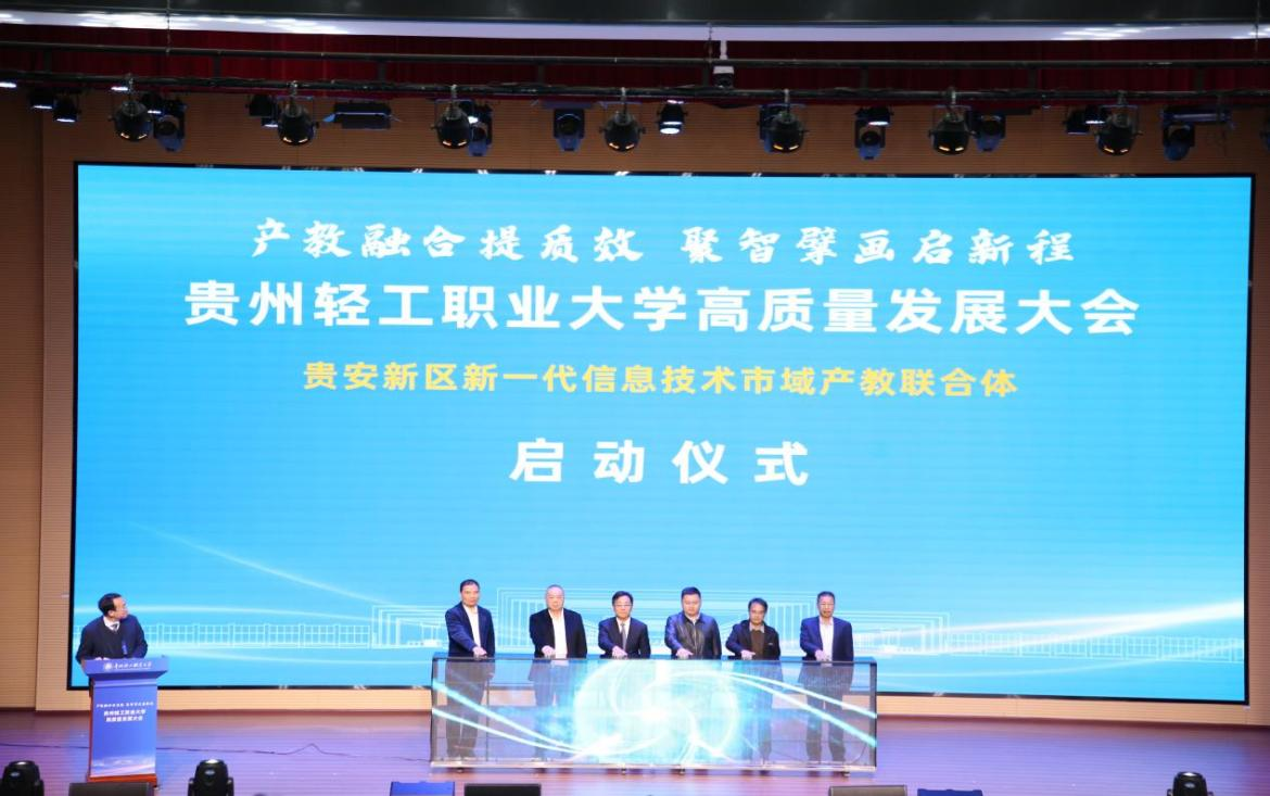 11月27日,在贵州轻工职业大学高质量发展大会现场,贵安新区新一代信息技术市域产教联合体正式揭牌成立。这是深入学习贯彻党的二十大报告中“统筹职业教育、高等教育、继续教育协同创新,推进职普融通、产教融合、科教融汇,优化职业教育类型定位”的关键行动,也是落实国家“东数西算”工程与贵州省数字经济发展战略的重要举措,标志着贵安新区新一代信息技术产业与职业教育协同发展迈入规模化、规范化新阶段。