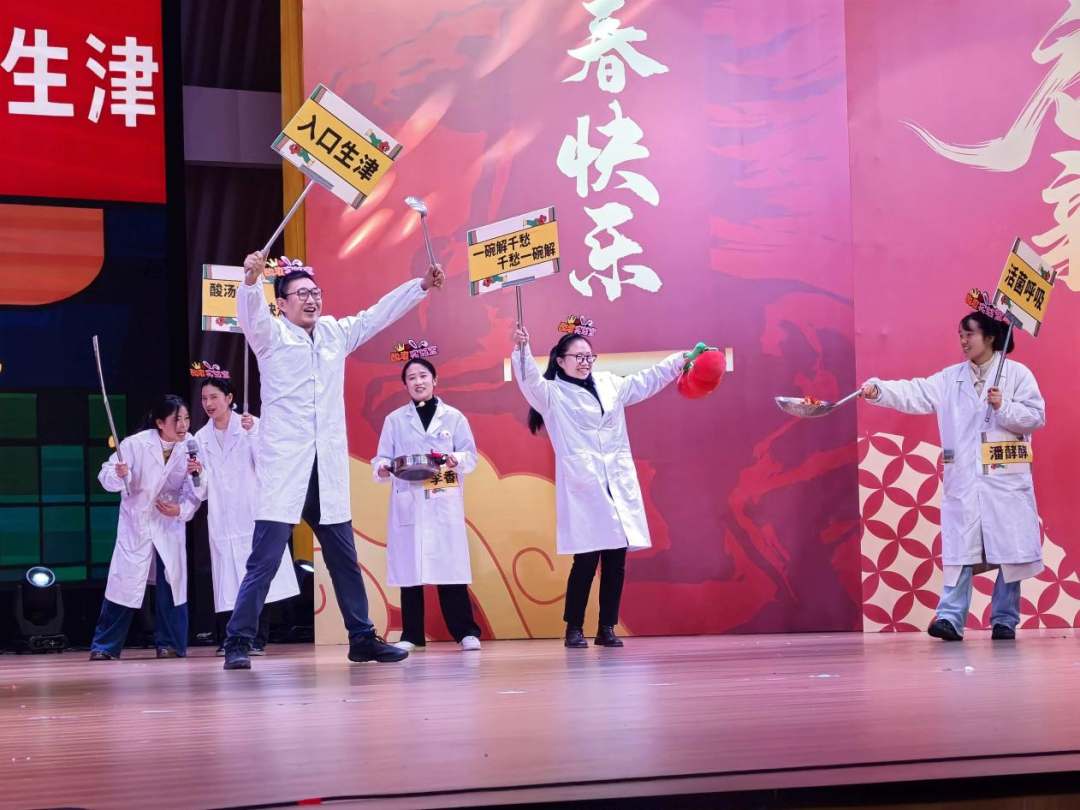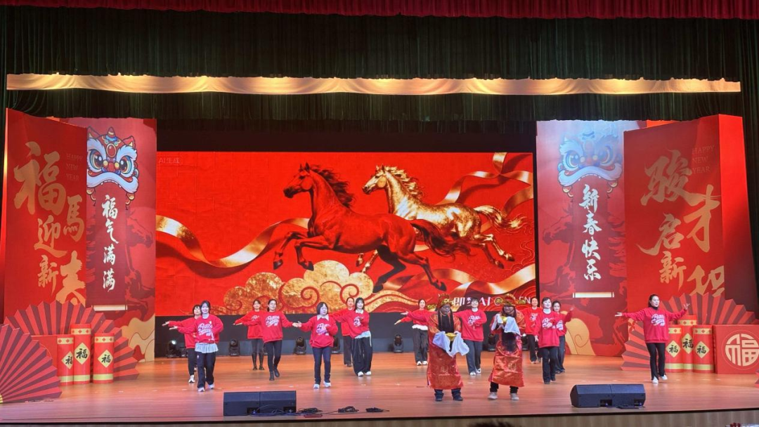 联谊会以《瑞狮欢舞贺新春》龙狮表演燃动开场,年度工作回顾视频串联起师生们并肩奋斗的珍贵记忆,后续的展演也是亮点纷呈。舞蹈、歌曲、歌舞串烧、相声、唐复原走秀、玩偶舞等多元节目轮番登场,诙谐逗趣、萌趣十足,尽显教职工风采。四轮抽奖穿插其间持续引爆欢乐氛围,情景剧、短剧等创意节目更添惊喜,整场演出兼具视听美感与情感共鸣,满溢新春暖意与集体向心力。