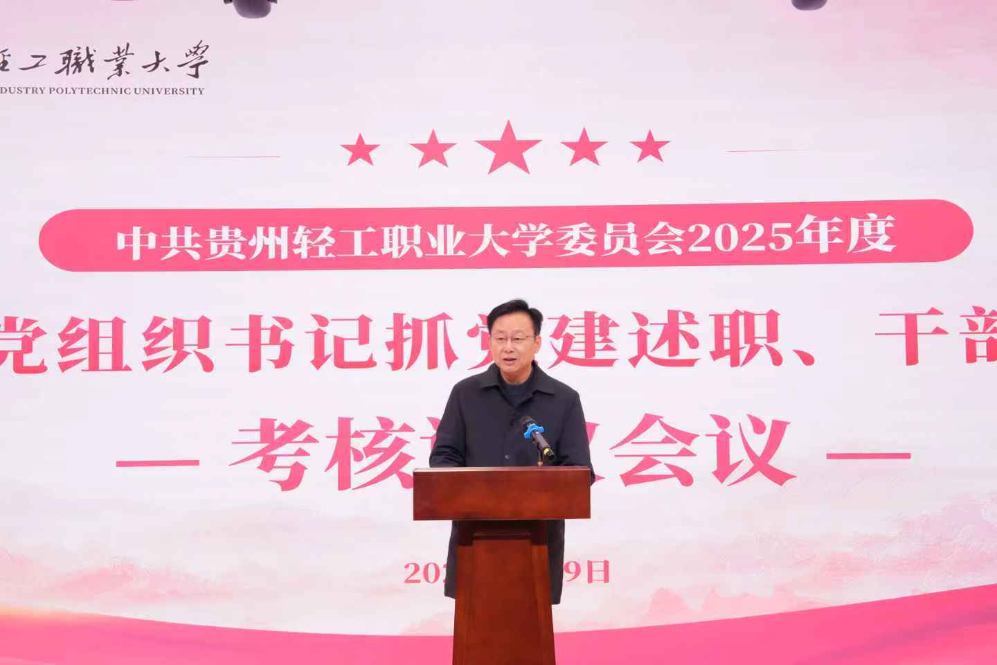 1月9日,学校在通达楼学术报告厅举行2025年度基层党组织书记抓党建述职、干部述职考核会议。党委领导班子成员、副科级及以上干部参加会议。党委书记张勇对基层党组织书记述职作点评并总结讲话,党委副书记、校长杨天仪对中层干部述职作点评,党委副书记任世晟主持会议。