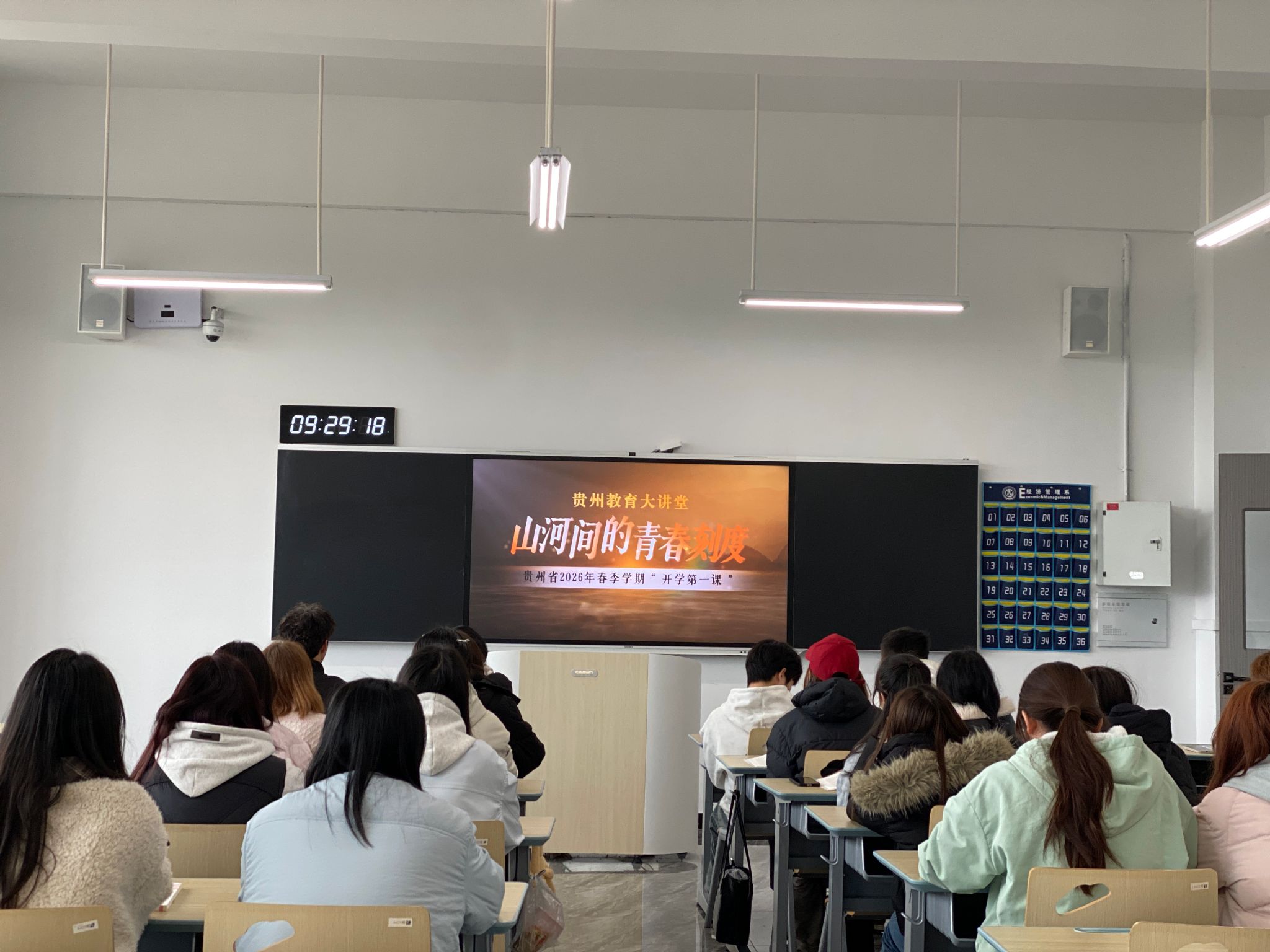 3月2日上午8点30分,学校开学第一天,全校师生共上“开学第一课”,集中收看贵州省2026年春季学期“开学第一课”——《山河间的青春刻度》,学校党委书记张勇,党委副书记、校长杨天仪,党委班子成员、中层干部、骨干教师以“青春何为?以奋进镌刻中国式现代化的多彩贵州画卷”为主题,为学生授课。