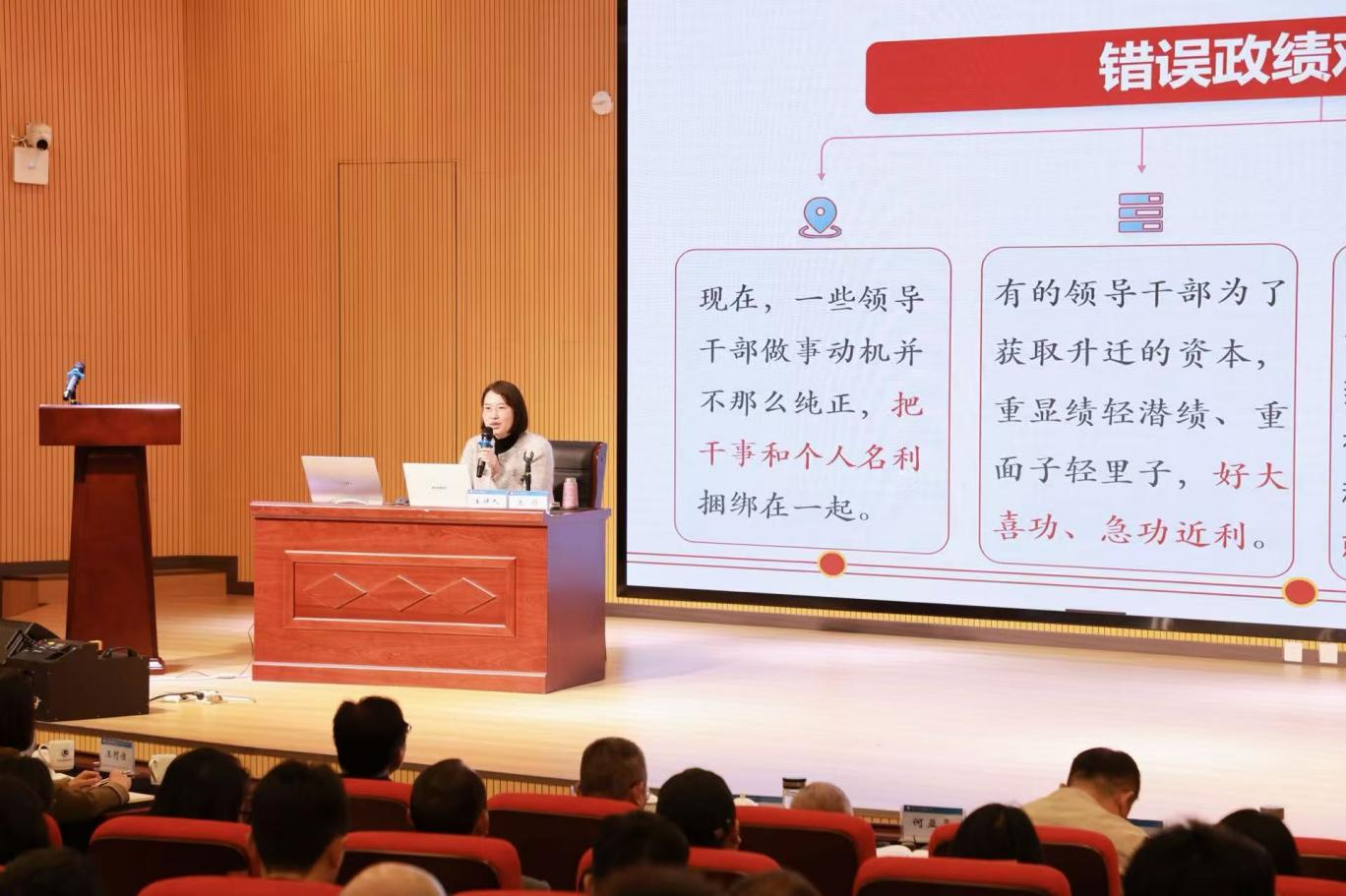 报告会上,兰图教授以“深入学习贯彻习近平总书记关于树立和践行正确政绩观的重要论述”为主题,作了一场主题鲜明、内涵深刻、务实高效的专题辅导。辅导报告紧紧围绕树立和践行正确政绩观这一核心主题,系统阐释了正确政绩观的时代内涵、重大意义、核心要义与实践路径。兰图教授重点从三个方面进行了深入解读:一是“充分认识‘政绩为谁而树’的根本立场”,深刻阐述了共产党人必须牢记“为民造福是最大政绩”,树立和践行正确政绩观起决定性作用的是党性,必须坚持以人民为中心的发展思想;二是“准确把握‘树什么样的政绩’的发展导向”,要处理好“公与私、上与下、大与小、远与近、尽力而为与量力而行、干净与干事”等六方面关系,深刻认识错误政绩观的现实表现和严重危害,完整、准确、全面贯彻新发展理念;三是“自觉践行‘靠什么树政绩’的实践要求”,力戒形式主义、官僚主义,完善考评机制,发扬钉钉子精神抓工作落实,并涵养“功成不必在我”的精神境界和“功成必定有我”的历史担当。整个辅导既有理论高度,又有实践深度,既注重思想引领,又强化方法指引,对全体党员干部深化思想认识、提高政治站位、强化责任担当具有重要的指导意义。