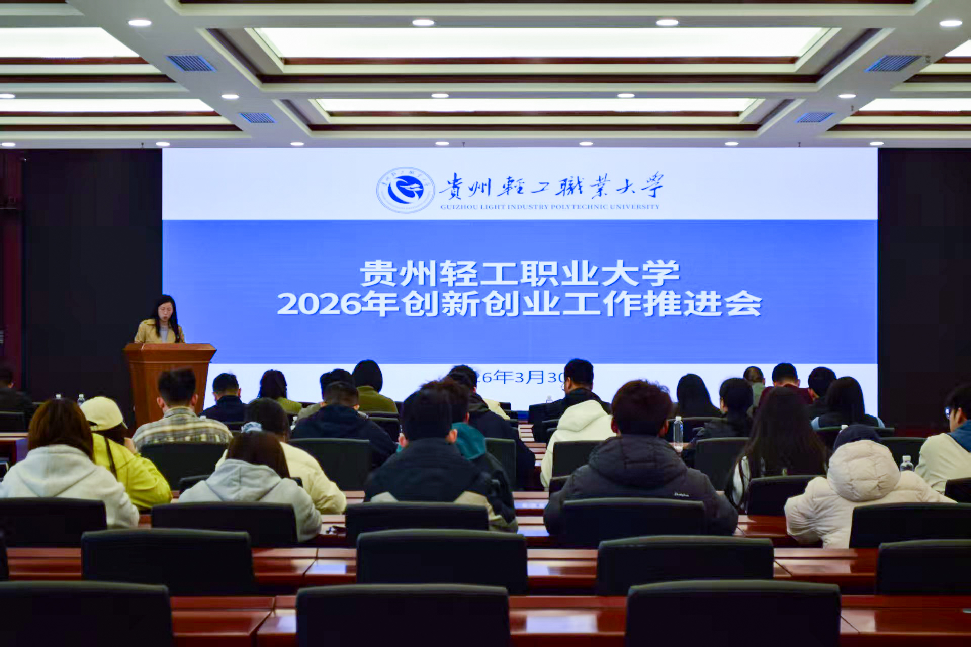 为全面部署2026年创新创业工作,深化双创教育改革,提升学生创新精神与实践能力,3月30日上午,贵州轻工职业大学在行政楼237会议室召开2026年创新创业工作推进会。党委副书记任世晟出席会议并讲话,团委、科研处、各院系党总支、博士团队、众创空间负责人、双创工作教师及备赛师生代表参会。