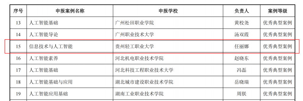 2026年3月30日,教育部职业院校信息化教学指导委员会公布《关于人工智能应用典型案例遴选结果的公示》,我校申报的《信息技术与人工智能》案例成功入选人工智能通识课程优秀典型案例,彰显了我校在人工智能通识教育领域的教学探索与实践成效。