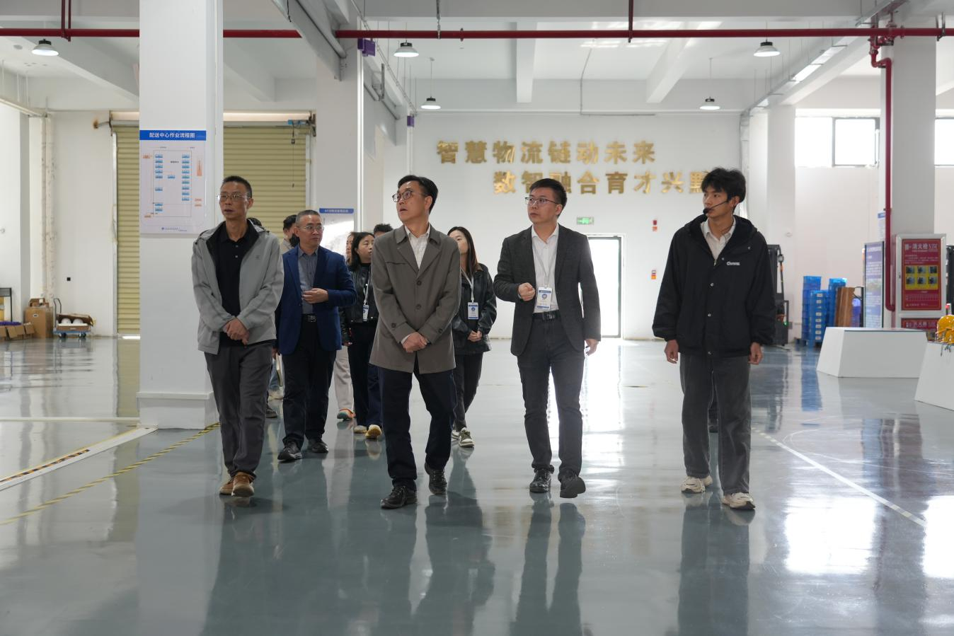 杨天仪校长一行先后实地察看经济管理系国家级现代物流开放实训基地、电商直播基地与党群服务中心,实训基地负责人详细汇报基地运行情况,辅导员就班级管理、校园安全等工作作专项汇报。