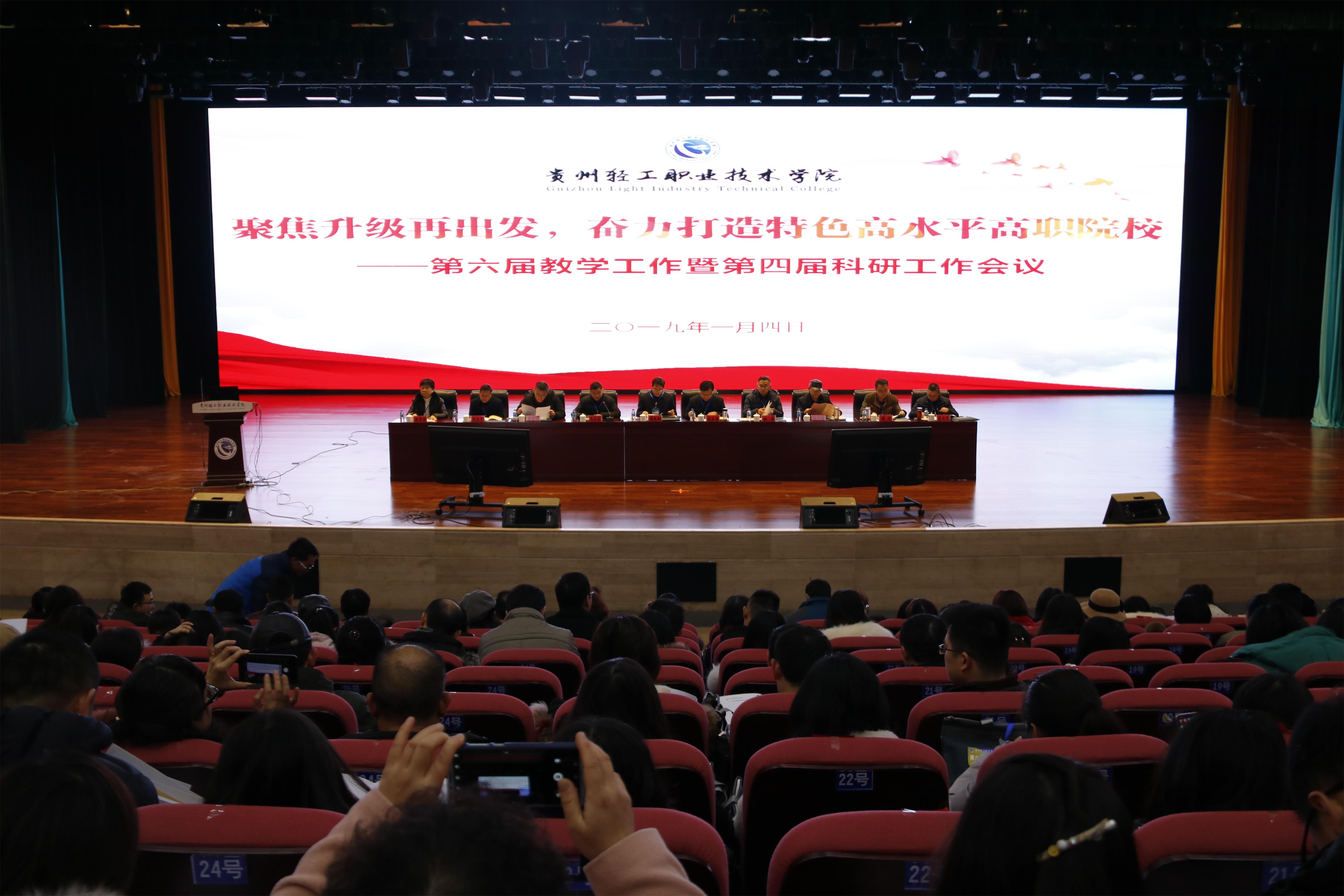 1月4日,以“聚焦升级再出发奋力打造特色高水平高职院校”为主题的第六届教学工作暨第四届科研工作会议在学院大礼堂隆重召开。学院领导班子全体成员、中层干部、副科级干部、学术委员会委员、专业带头人、教研室主任、骨干教师,各系部校内专兼职教师,教务处、科研处、思政教学部、教学质量监督与评估办公室以及优质办全体人员参加会议。