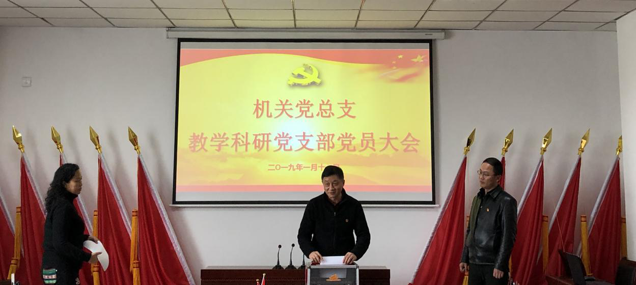 为切实加强基层党组织建设,更好地发挥党组织作用,根据《中国共产党章程》《中国共产党基层组织选举工作暂行条例》《中国共产党支部工作条例(试行)》等有关规定,按照学院《关于印发< 中共贵州轻工职业技术学院委员会2018年支部委员会换届选举工作方案>的通知》(黔轻职院党〔2018〕89号)文件要求,机关党总支教学科研党支部于2019年1月11日中午1点在行政楼二楼机关党总支党员活动室举行支委选举党员会。大会在庄严的《国际歌》歌声中拉开帷幕,按照会议议程,会议审议通过了上一届支部委员会的工作报告、《党支部委员会选举办法(草案)》,通过无记名投票方式选举产生了新一届教学科研党支部委员会,徐楠、杨汝洁、杜开勇、方开考、何瑞师当选为新一届委员。