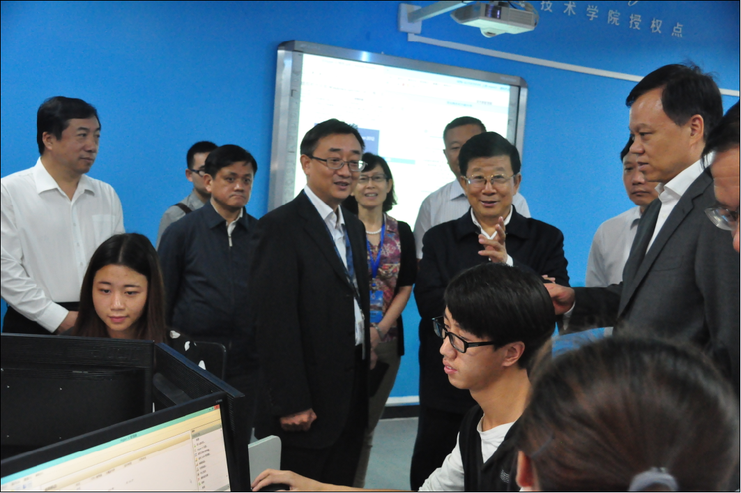 调研考察过程中,省委书记、省人大常委会主任赵克志听取了学院党委书记卢亚莲,党委副书记、院长周杰等领导关于学院建设发展成效的情况汇报,观看了大学城和学院建设成效展,查看了学院建设中的图书馆和学生活动中心的施工现场。在学院“微软IT学院”授权点,赵克志书记与陈敏尔省长率相关领导深入课堂与教师和学生亲切交谈,深入了解学院“微软IT学院”授权点学生学习情况。听取汇报和实地考察后,省委书记、省人大常委会主任赵克志对学院近年来加快发展取得的办学成效给予了充分肯定,对学院进一步加强内涵建设,提高办学质量,办人民满意的高等职业教育,更好地服务区域经济社会发展等方面提出了更高要求并寄予了殷切期望。