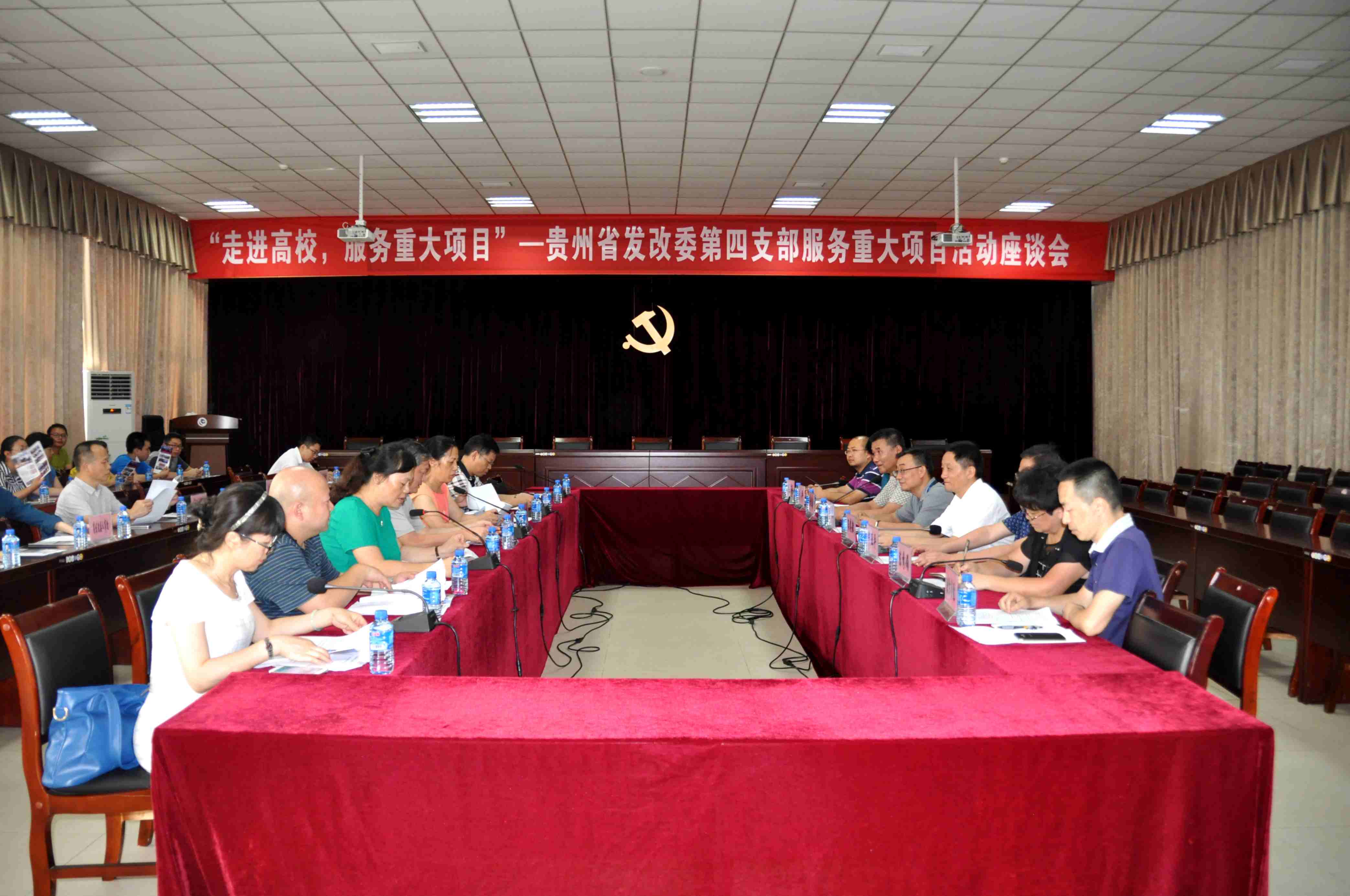 随后,“走进高校,服务重大项目”贵州省发改委第四支部服务重大项目座谈会在学院召开。贵州省发改委考察人员一行、学院院长周杰等相关院领导、相关部门负责人参加座谈会。省发改委第四支部书记包林主持会议。