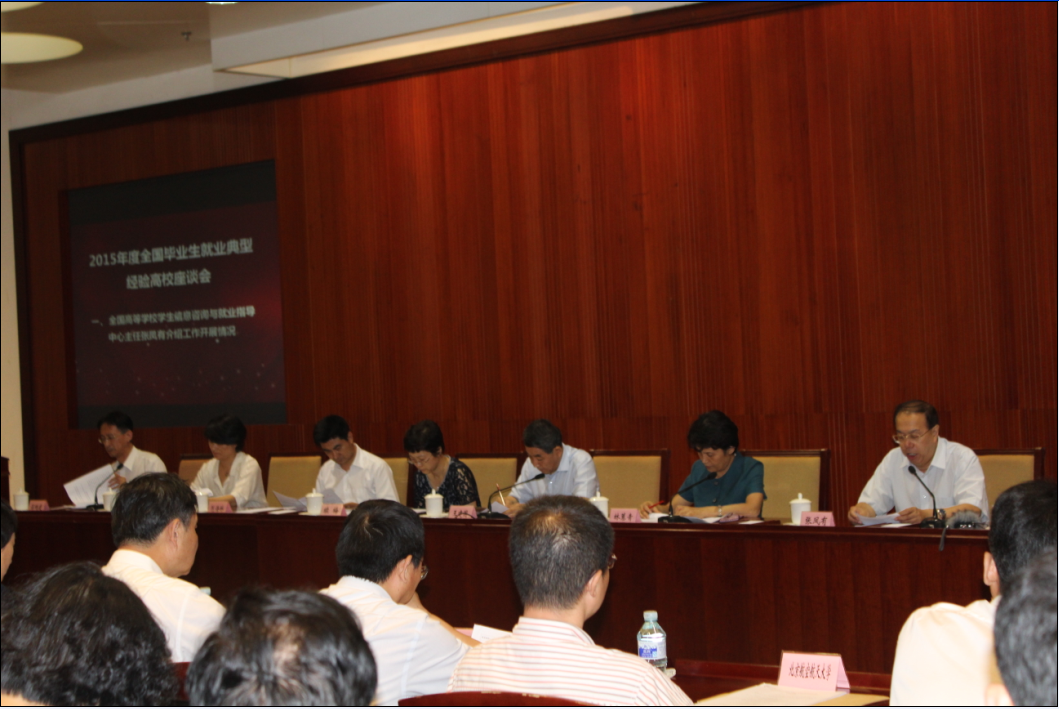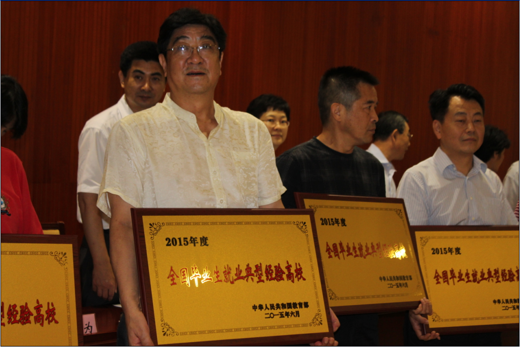 7月30日,教育部召开2015年度全国毕业生就业典型经验高校座谈会。教育部副部长林蕙青出席会议并讲话,总结宣传工作领导小组成员、50所年度就业典型经验高校及部分省市毕业生就业主管部门负责同志参加了会议。华中科技大学、石家庄铁道大学、山东协和学院和江苏农林职业技术学院做了典型发言,副院长张实践代表学院率队参加会议并接牌。