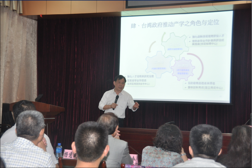 钟任琴校长在讲座上介绍了当前台湾地区高校教育的发展形势,谈到了应用性大学的定位和应用性研究的方向,从产官合作关系、产学合作的动机、产学合作的效益、推动产学的角色与定位、产学合作面向(标的)、大学产学合作创新发展模式、案例分享等七个方面介绍了朝阳科技大学产学合作实践经验。