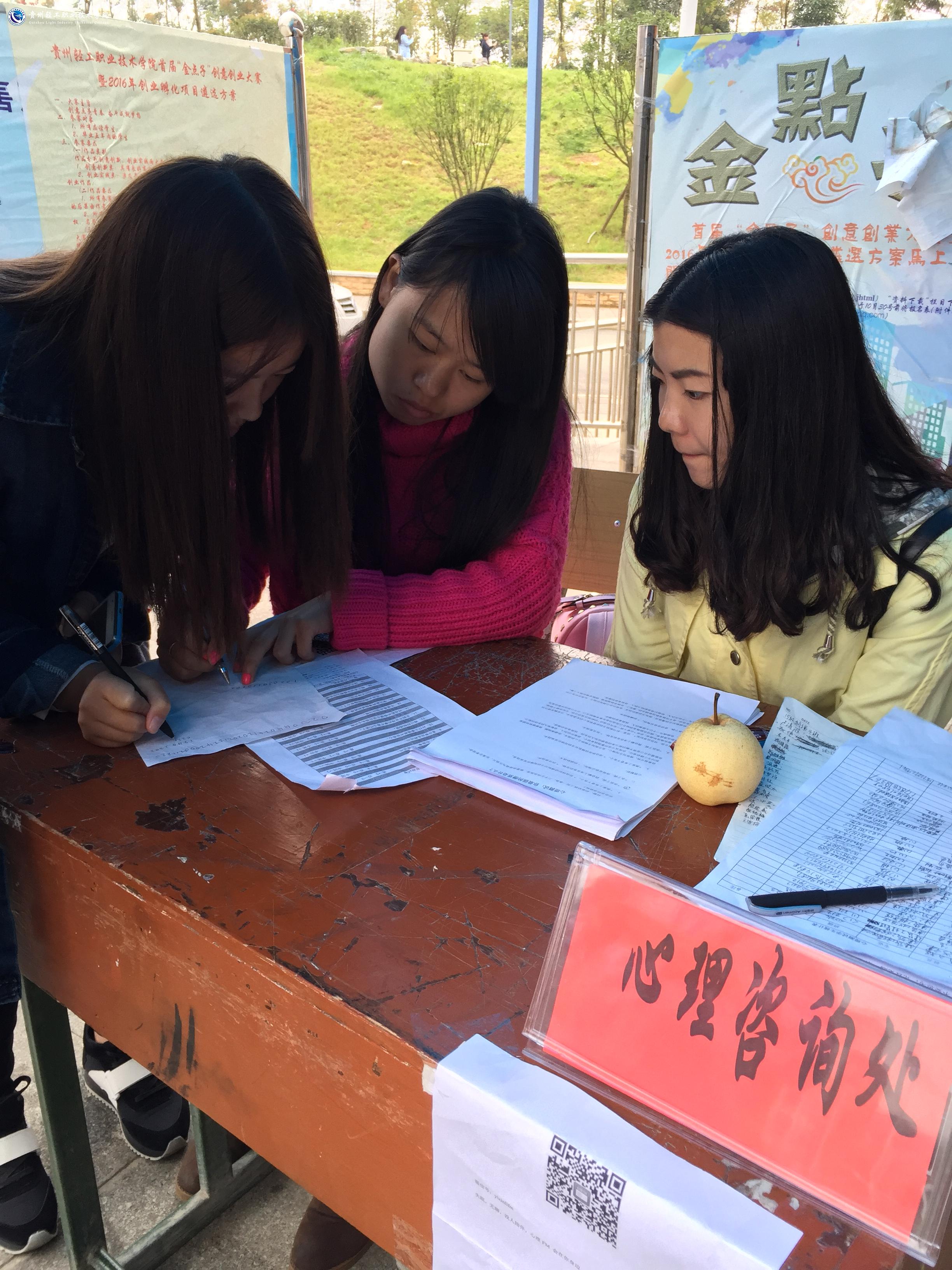 11月3日中午,学生工作处在学院一食堂和二食堂设立心理咨询点。尽管11月的贵阳秋风瑟瑟,但是,到咨询点参与咨询的学生络绎不绝,在活动现场学生与心理健康老师进行了良性互动,活动取得了预期效果,受到参与师生的一致好评。