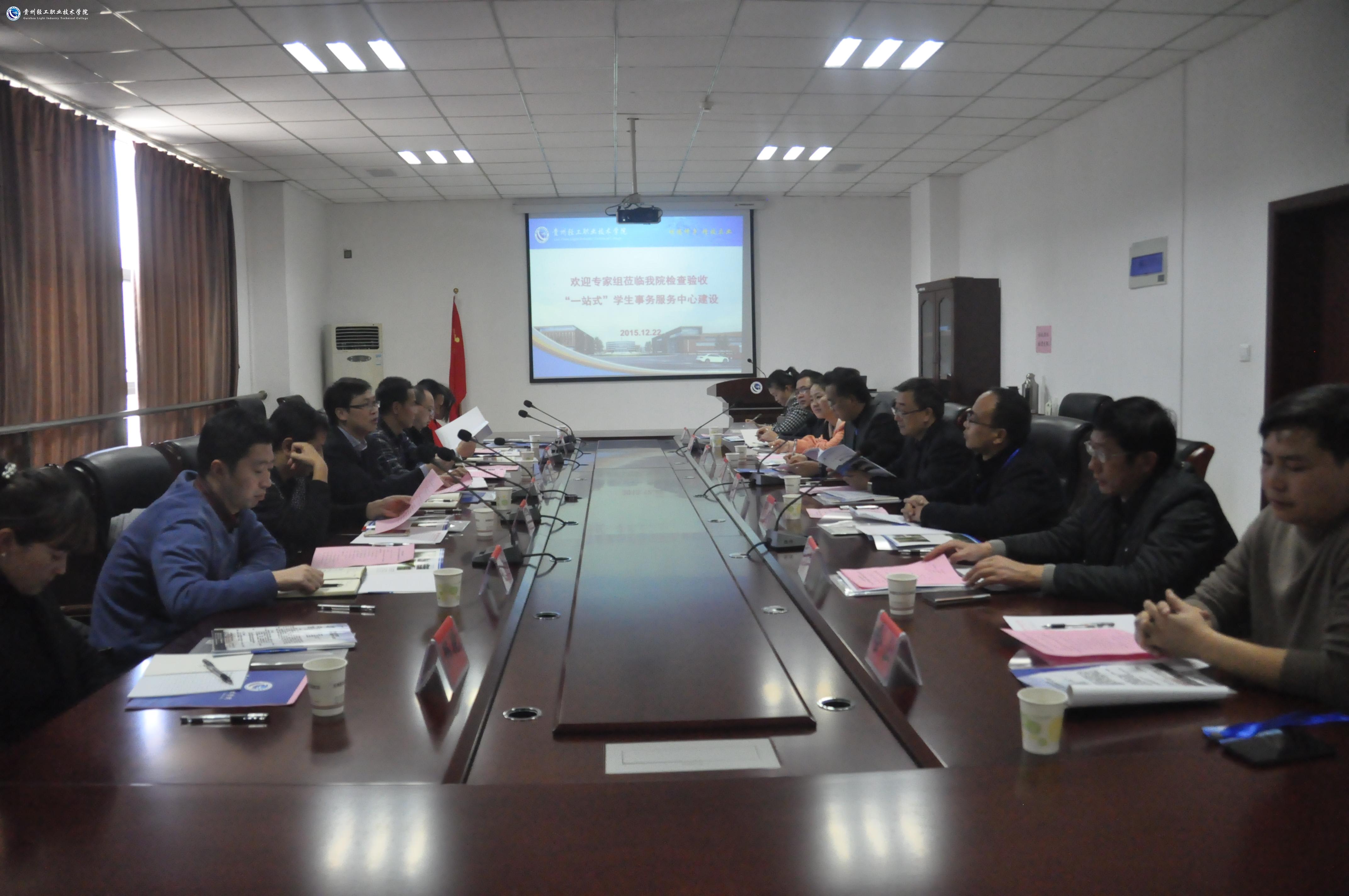 下午4时30分,专家组召开“中心”建设检查验收反馈会。在会上,专家组组长、贵州财经大学党委副书记肖建宗同志代表专家组对我院“中心”建设给予了充分肯定,专家组一致认为,我院对“中心”建设领导高度重视、选址合理、保障有力、设计简洁明快、布局合理、功能比较健全。并特别指出,我院“中心”建设过程中能够充分结合轻院校情、贵安新区建设与“大众创业、万众创新”的实际,是服务学生与教师的事务性平台,能够实现融大学生诚信教育、思想政治教育和创业教育于一体,注重人文关怀。比如“中心”组织的“校车送你回家”活动受到学生普遍好评。专家组还对“中心”建设提出了宝贵建议与意见:一是由于运行时间较短,学生工作部门应积极引导与推介学生到“中心”办事;二是要定期总结“中心”运行效果,不断深化与拓展“中心”服务功能;三是要进一步加强“中心”的内涵建设,不断推进“中心”的信息化。专家组成员、省教育厅学生处处长邓生井也希望我院坚持“内涵发展、项目拓展,服务提升”的原则,努力把学生事务中心建设成为服务师生事务处理的大平台。