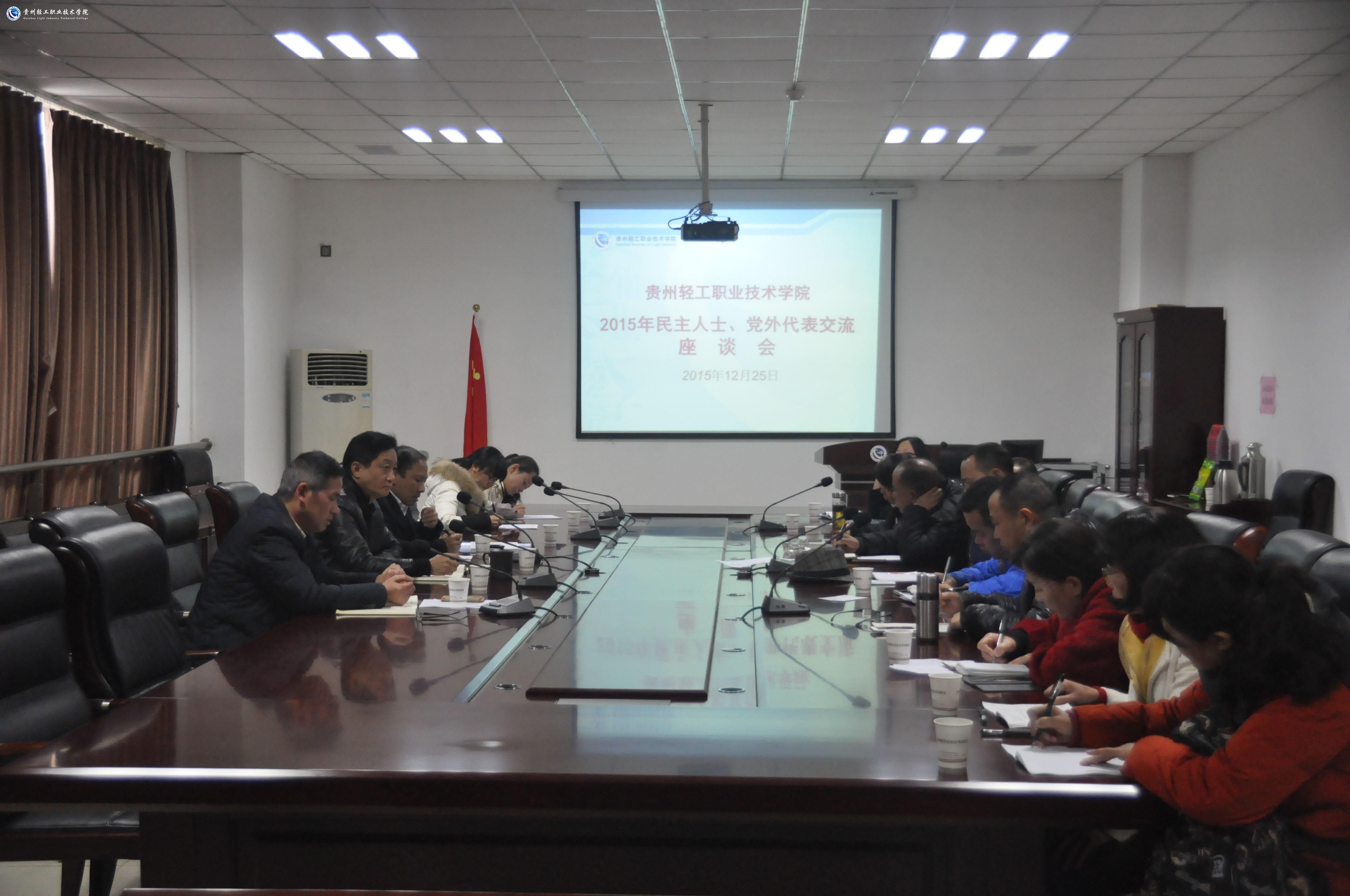 会上,宣传统战部副部长袁馨对学院统战工作面临的形势任务以及学院2015年统战工作情况作了介绍。参会的各党外人士代表就各自参加民主党派和其它社会活动情况作了经验交流,并就如何促进学院加快发展积极建言献策。