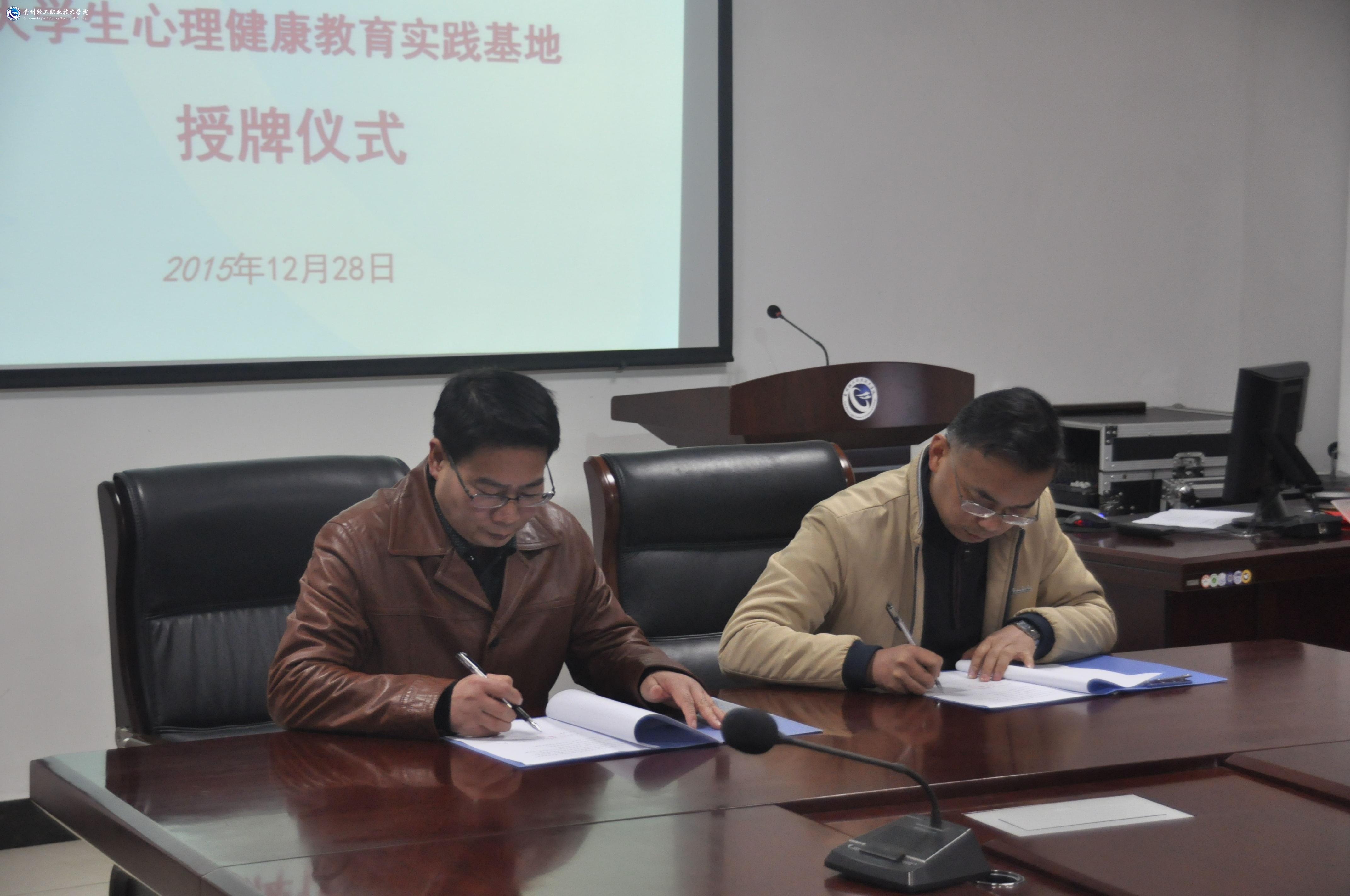 会议在亲切友好的气氛中进行。首先由贵州医科大学医学人文学院院长杜凯同志和学院党委副书记杜平同志共同签订共建贵州医科大学医学人文学院应用心理学教育实习基地暨大学生心理健康教育实践基地的协议,随后,贵州医科大学医学人文学院院长杜凯同志和院党委副书记杜平同志共同授牌。