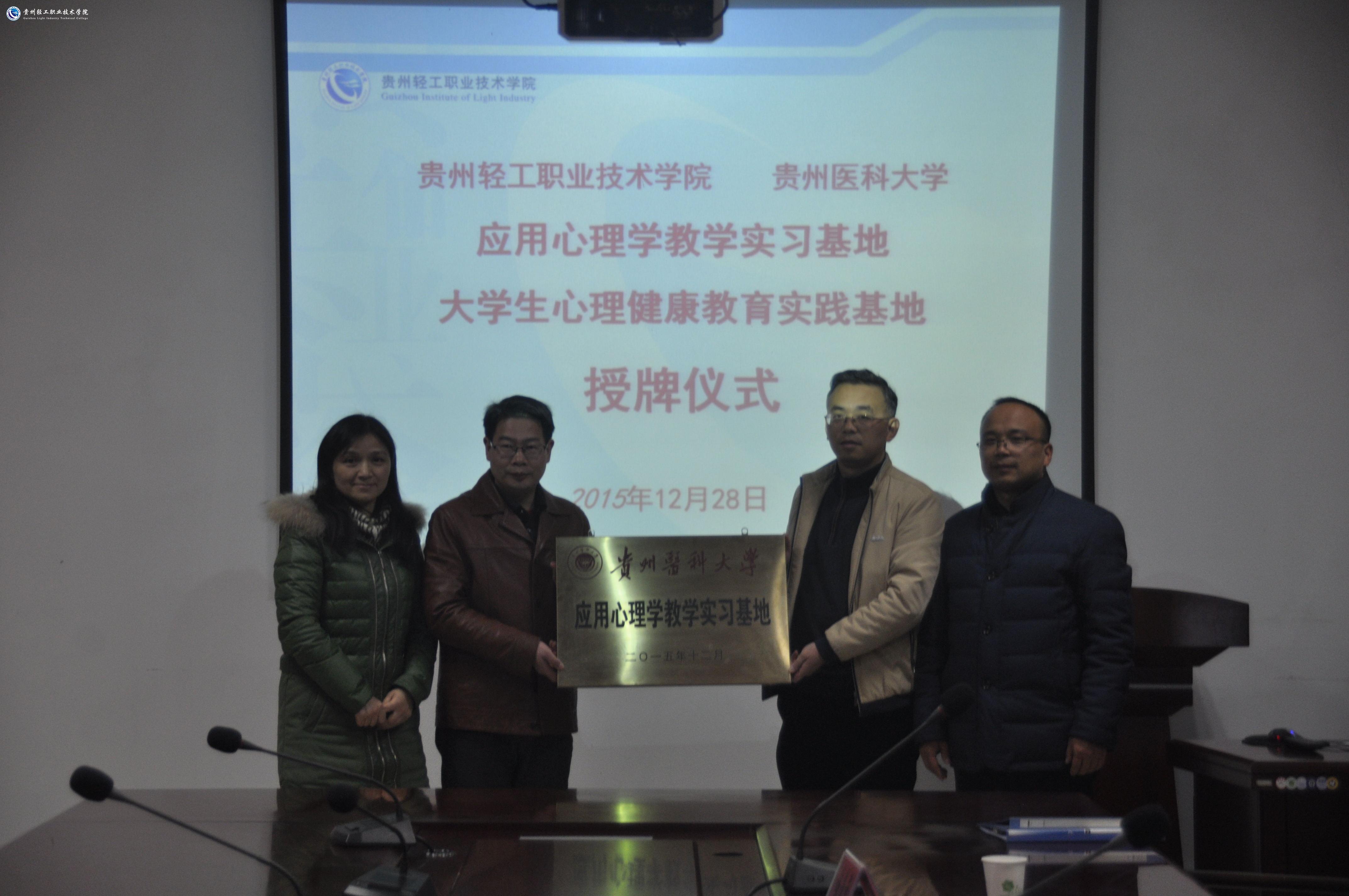 12月28日下午,贵州医科大学医学人文学院应用心理学教学实习基地授牌仪式在我院行政楼第一会议室举行。贵州医科大学医学人文学院院长杜凯、副院长徐红以及该院心理学实验中心主任严万森博士一行莅临我院。学院党委副书记杜平、学生处处长李宏昌、副处长张庚斐、信息工程系和建筑工程系党总支书记等参加授牌仪式。学生处处长李宏昌主持会议。