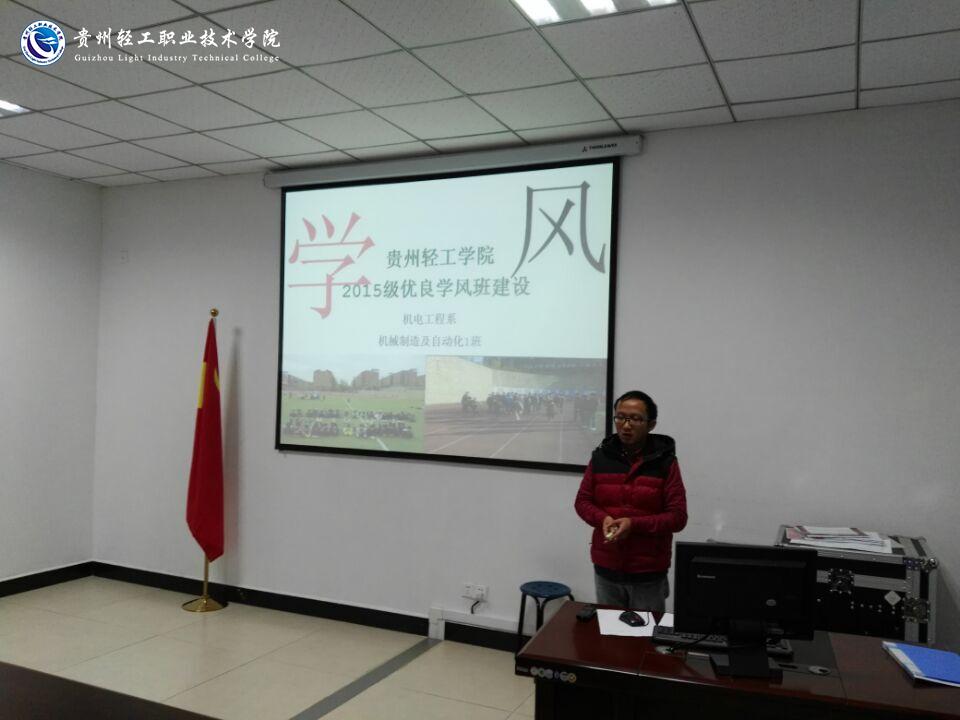 学生处处长李宏昌主持会议。他就本次优良学风示范系评审工作的评分标准进行详细具体的说明并提出评审要求。按照事前抽签的顺序,依次由艺术设计系、经济管理系、建筑工程系、轻工化工系和机电工程系的学生管理科科长或教师代表依次上台进行10分钟的学风建设工作展示汇报,汇报结束后,评审根据《优良学风示范系量化评分表》上具体的评分标准,查阅资料,现场打分。