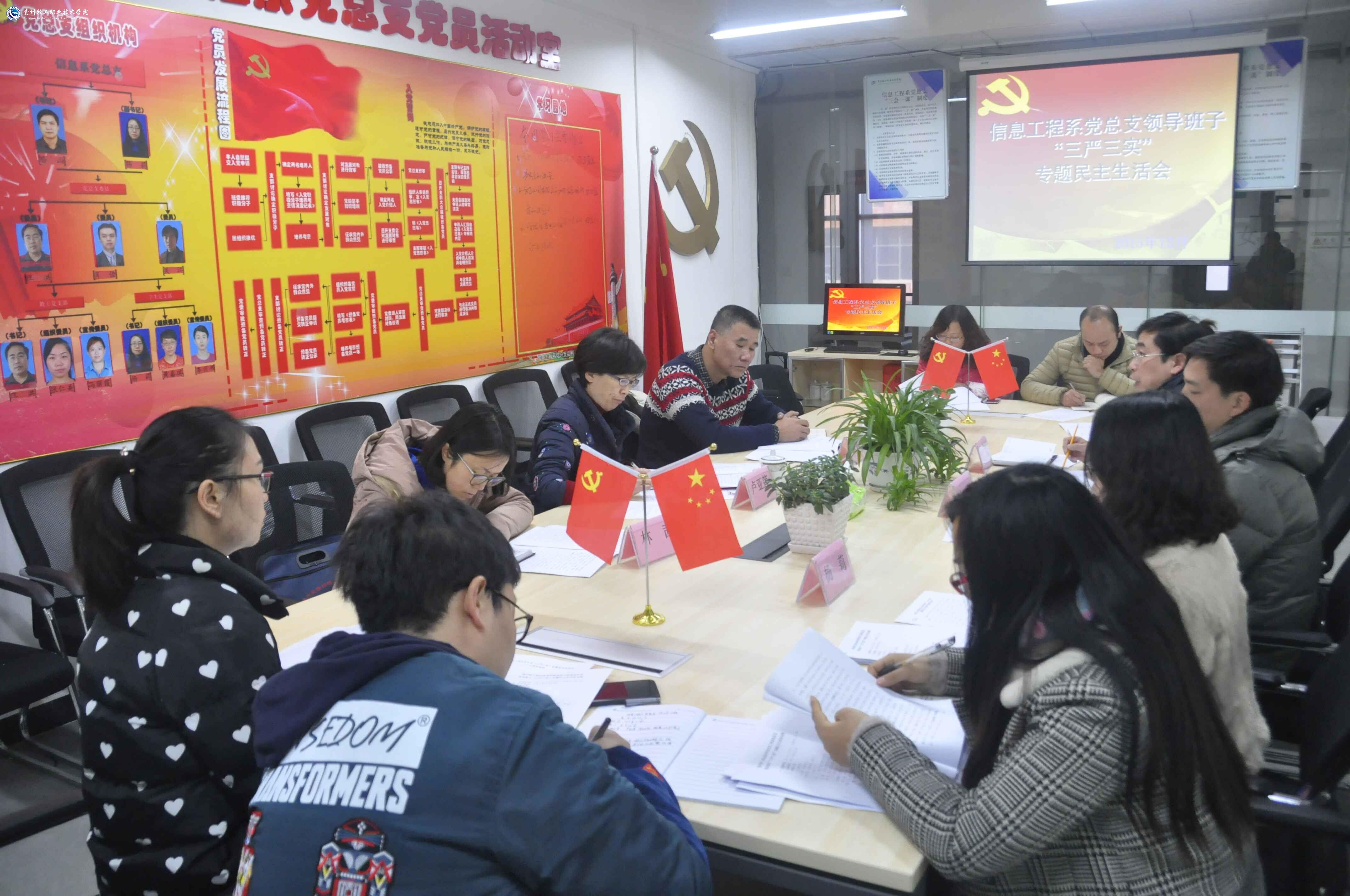 2015年12月31日上午,信息工程系党总支领导班子“三严三实”专题民主生活会在系会议室召开。学院党委书记卢亚莲同志、学院副院长徐兆伯同志、学院组织部副部长林茜同志,亲自莅临出席指导。参加此次会议有信息工程系党总支领导班子全体成员,系部科级干部、党员代表、党支部书记代表等13人。会议由系党总支书记哈山同志主持。