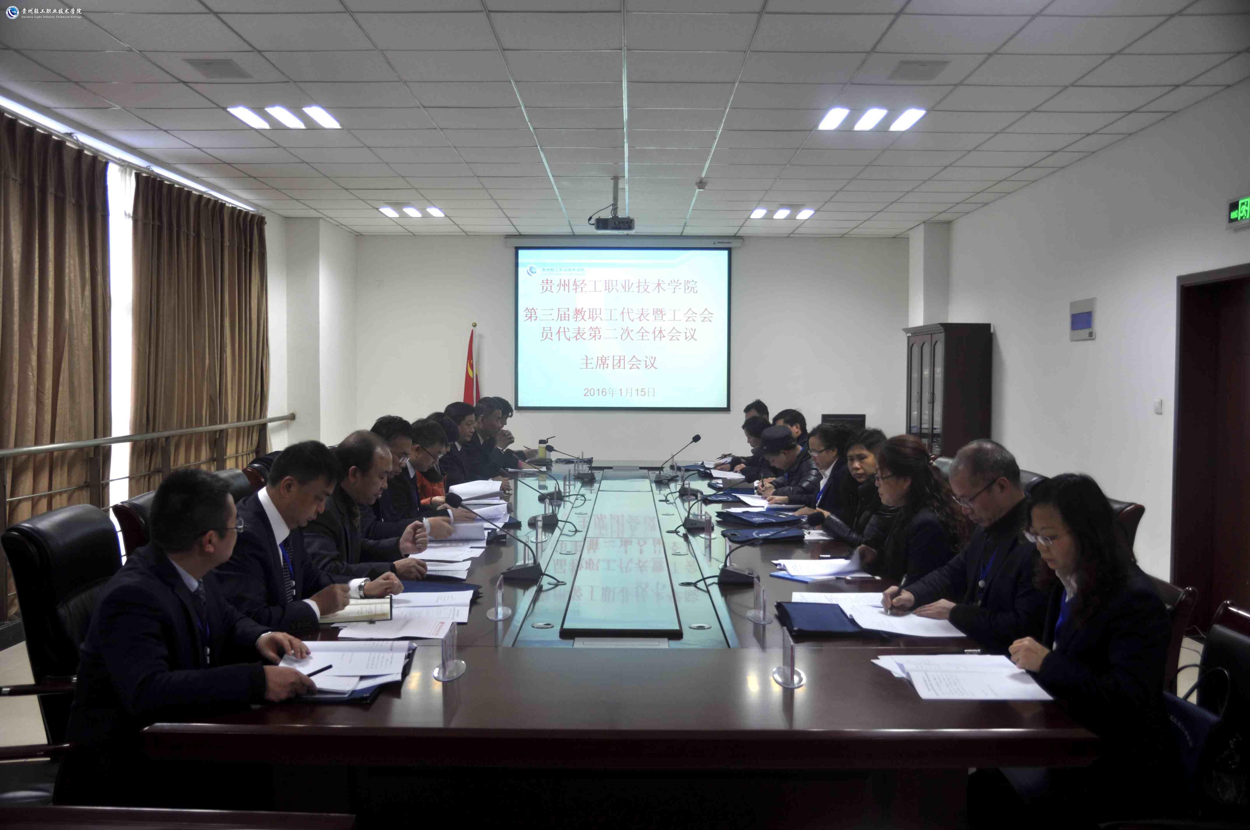 1月 15 日上午8:45至9:00,学院第三届教职工代表暨工会会员代表大会第二次全体会议主席团第一次会议在行政楼三楼第二会议室召开,主席团成员参会,会议由副院长刘天德主持。 会议通过了大会执行主席(建议)名单和各代表团团长(建议)名单。