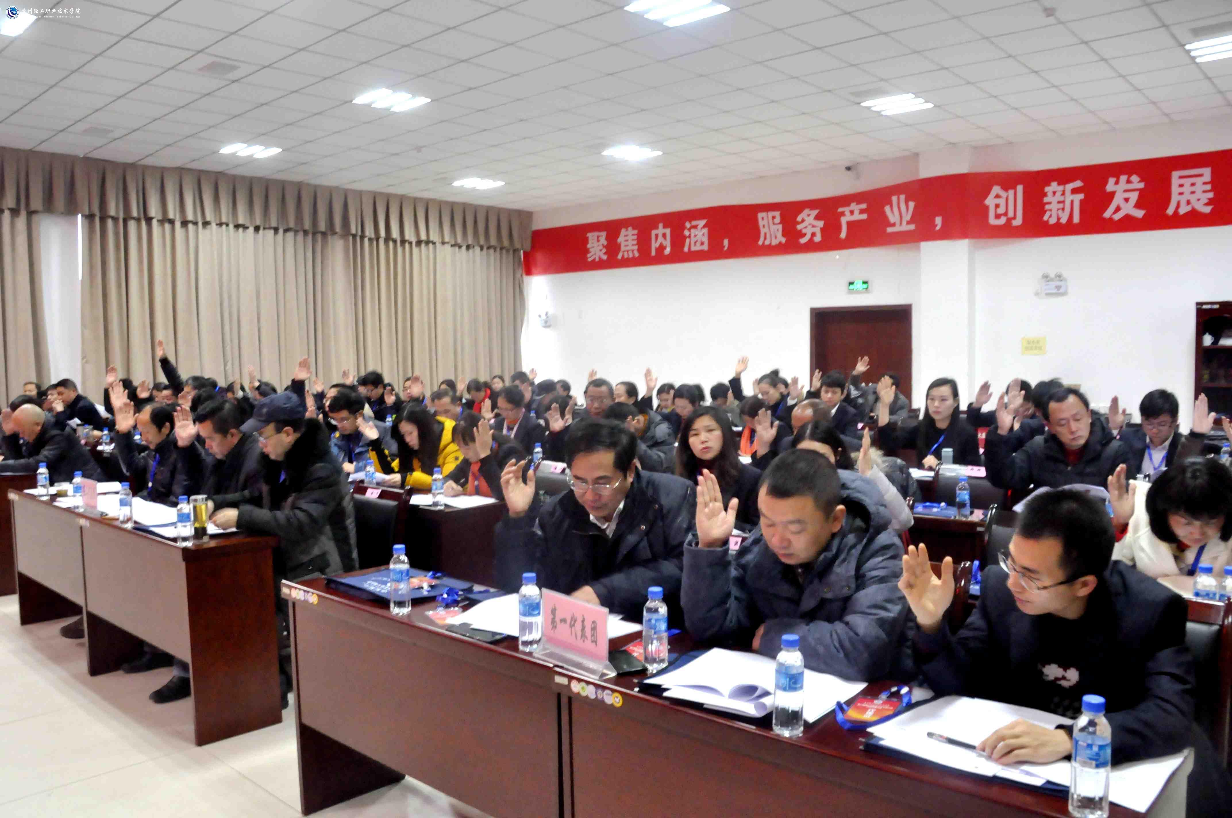 院长周杰同志作了题为《聚焦内涵 服务产业 创新发展》的学院工作报告,从2015年一年来的工作回顾和2016年的工作思路两大部分进行汇报,他在报告中说,2015年是具有历史意义的一年,学院第一次党代会胜利召开、组织开展了“三严三实”专题教育、接受了省委巡视组的常规巡视和财政厅财务信息检查组的检查,同时,基层组织建设和党风廉政建设进一步加强、思想政治工作体系完成基本构建。他说,2015年是辛劳的一年,这一年是学院出台规章制度26项、教育教学改革向纵深推进、完成了三个重点专业群+大数据的专业布局、搭建起了以学分制为基础、基于岗位需求的项目化驱动为特色的理实一体的课程体系、实训条件进一步改善,智慧校园的基础网络改造基本完成、初步构建了创新创业体系、干部和师资队伍建设成效显著、首次开展了“我最喜爱的老师”和“我最喜爱的辅导员”评选活动、组织了科学研究项目地厅级以上课题的申报、新校区建设工作顺利推进、完成了2015年国培任务、参加了第八届“中国-东盟教育交流周”活动。他说,2015年是值得欣喜的一年,学院成为全国就业50强高校之一、成为教育部现代学徒制试点院校、贵安创客联盟总部基地落户我院、获评为省级“五好”基层党组织等多项荣誉、实现了填报志愿学生数和录取分数的历史新高、组织参加了各类大赛并获得优异成绩、各级领导多次来到学校考察指导工作、中外合作办学实现了实质性突破。