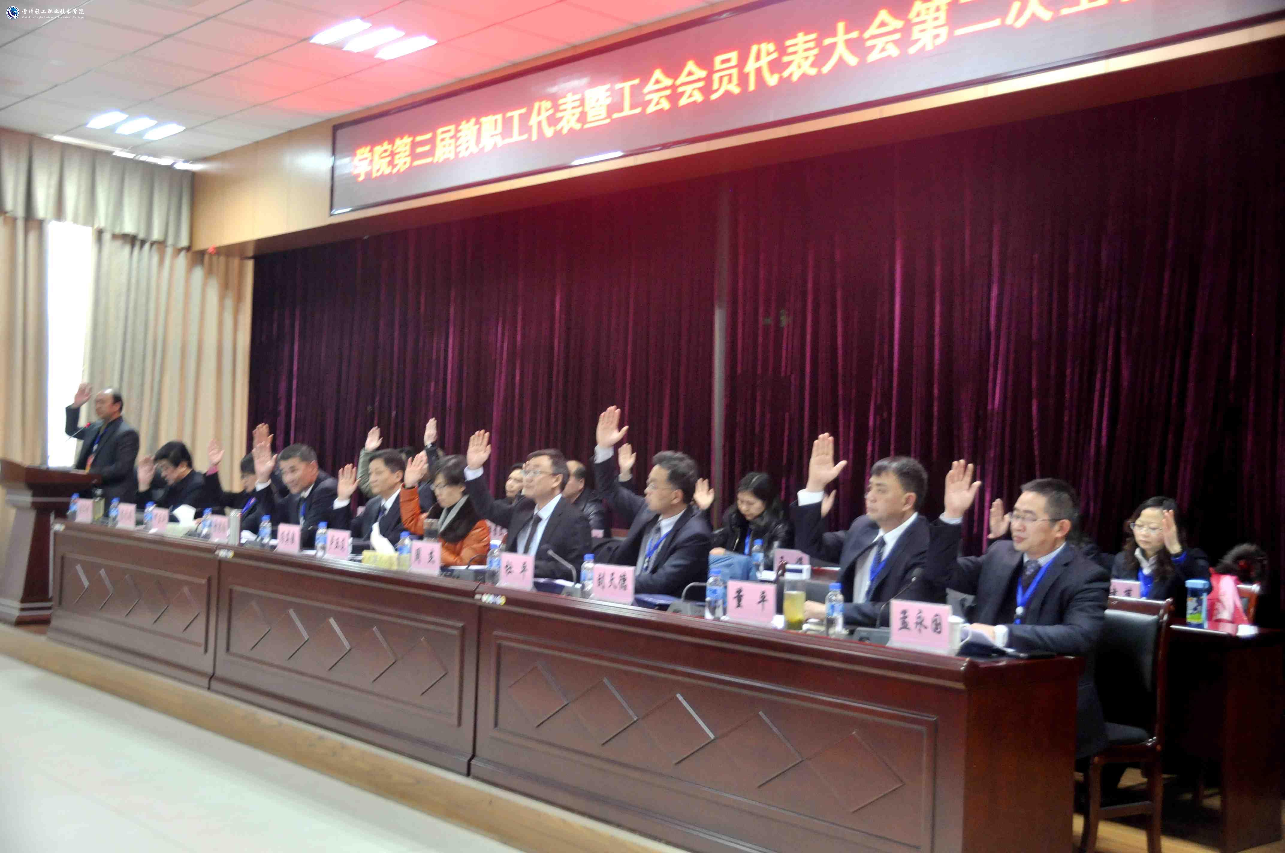 闭幕式上,全体参会代表以举手表决的方式通过了《学院工作报告》和《学院工会工作报告》。