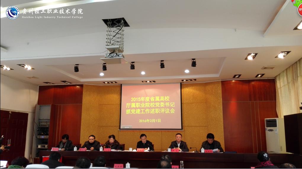 2月1日,省委教育工委召开2015年度省属高校、厅属职业院校党委书记抓基层党建工作述职评议会议。围绕落实全面从严治党主体责任、践行“三严三实”要求、加强基层党建工作各项任务,贵州大学等10所省属高校和我院等3所厅属高等职业院校党委书记进行了现场述职,2所厅属中等职业学校进行了书面述职。省教育厅党组书记、厅长,省委教育工委书记王凤友主持会议并讲话。省委教育工委领导逐一点评。省属高校、厅属职业院校党委书记、委(厅)相关处室和高校组织部门负责同志、部分“两代表一委员”和基层党员干部群众代表参加会议。