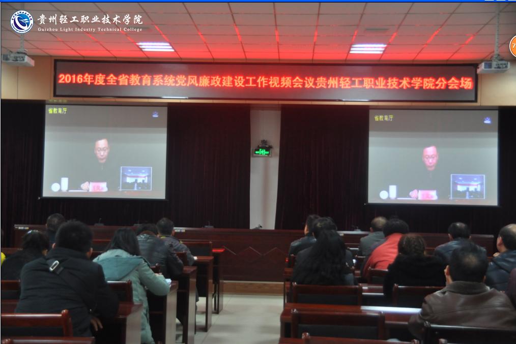 2月2日(星期二)下午14:30,2016年度全省教育系统党风廉政建设工作视频会议在省教厅主会场举行,学院在行政楼五楼会议室(第三会议室)设分会场参加视频会。党委书记卢亚莲、纪委书记董平到省教育厅主会场现场参加会议;院长周杰率学院在校领导班子成员,各部门负责人在学院分会场观看聆听全省教育系统党风廉政建设工作会议精神。