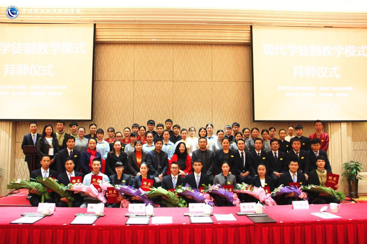 3月31日下午,人文社科系“现代师徒制”拜师仪式在贵安新区北斗湾开元大酒店举行。此次学院共聘任开元酒店12位同志为企业师傅,对我院2015级酒店管理专业35名学生传道、授业、解惑。院党委副书记杜平,人文社科系主任包节、系党总支书记王家友出席了拜师仪式。酒店相关负责人参加了拜师仪式。