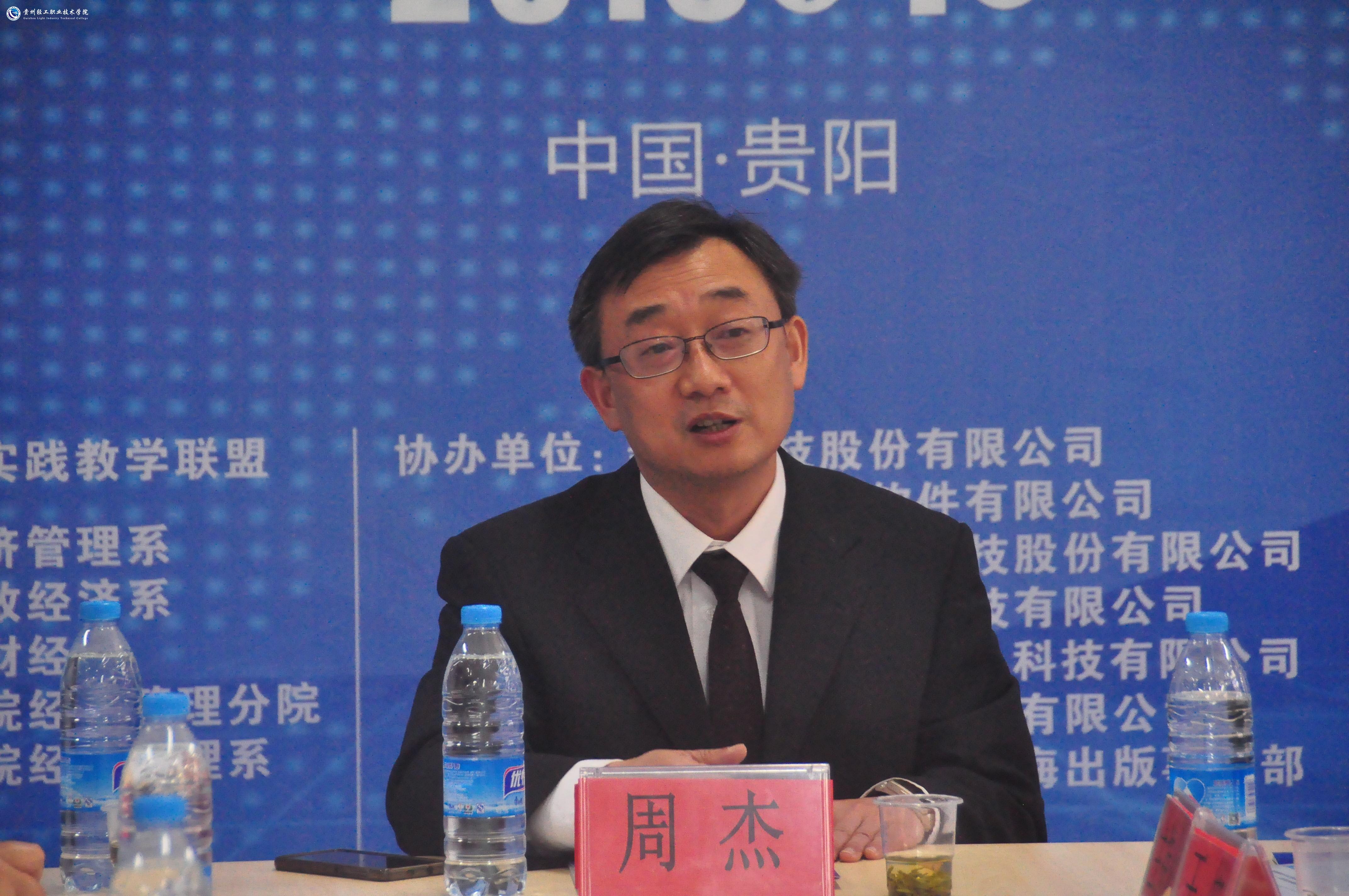 致辞中,周杰院长首先表达了对参会人员的欢迎和感谢。他表示,贵州省高职高专经管实践教学联盟高峰论坛的举办,为全省的高职高专经管实践教学提供了一个良好的交流平台和契机。希望所有的参会人员能够畅所欲言、各抒己见,交流分享近年来技能大赛对教学的促教作用,并通过与长期服务院校的资深企业进行面对面交流,从而更好地搭建校企合作平台,推动校企合作新局面。