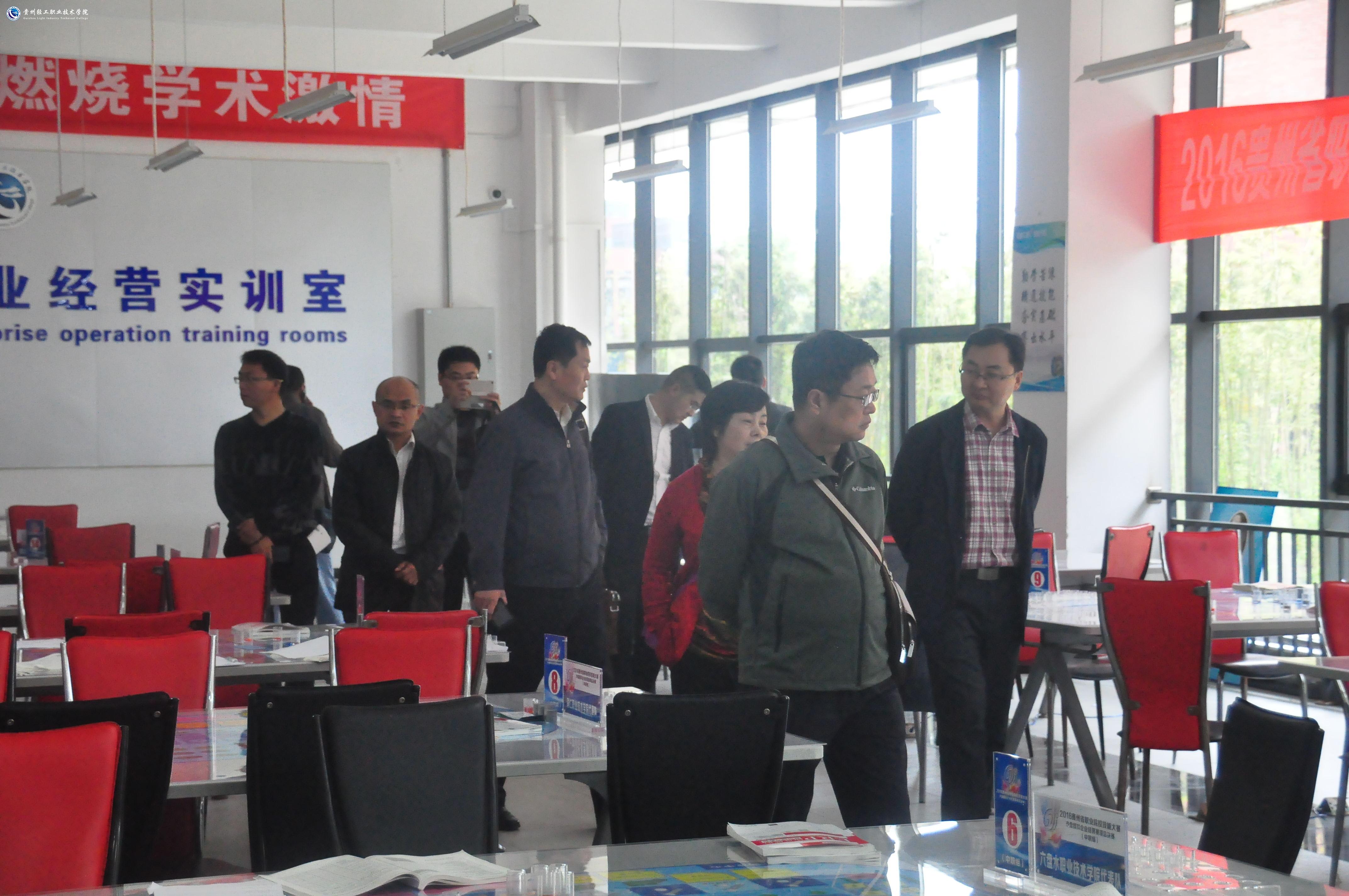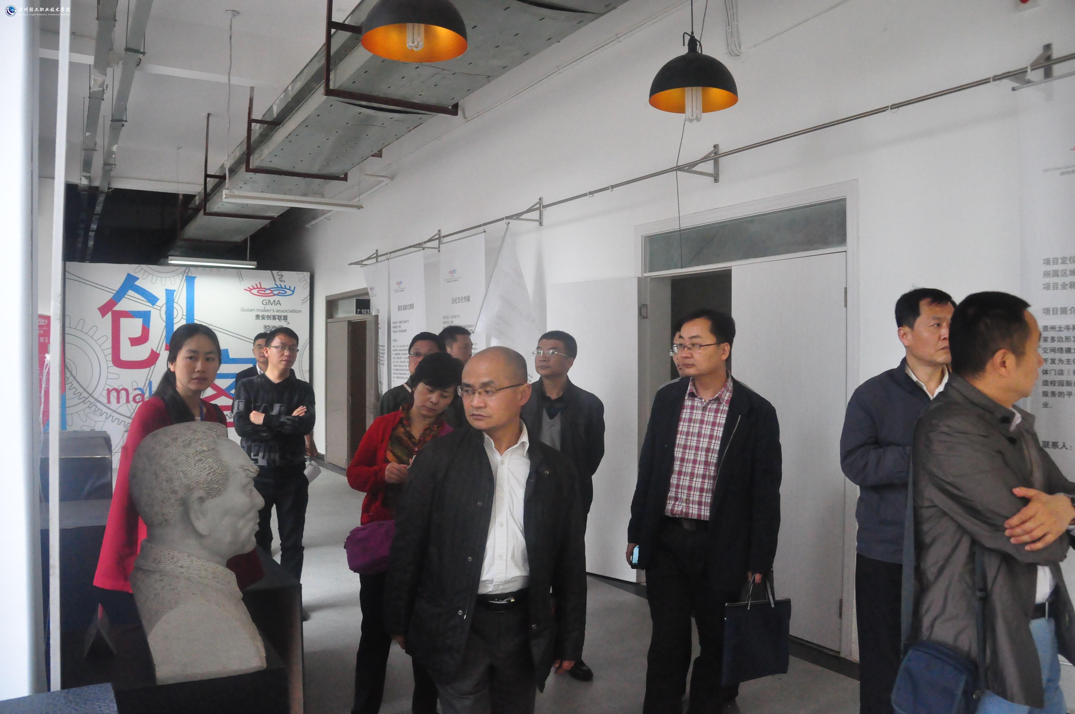 安徽省大中专毕业生就业指导中心一行主要参观了学院新建成的校园环境、落户我院的中国(贵安)创客联盟总部基地、中航博亚数控加工中心、轻工化工系酿酒实训室、经济管理系物流实训室、沙盘模拟实训室和办公区域等地。在边参观边听介绍的过程中,大家对学院的办学条件、实训设施建设、特色及成效等方面给予了高度评价。