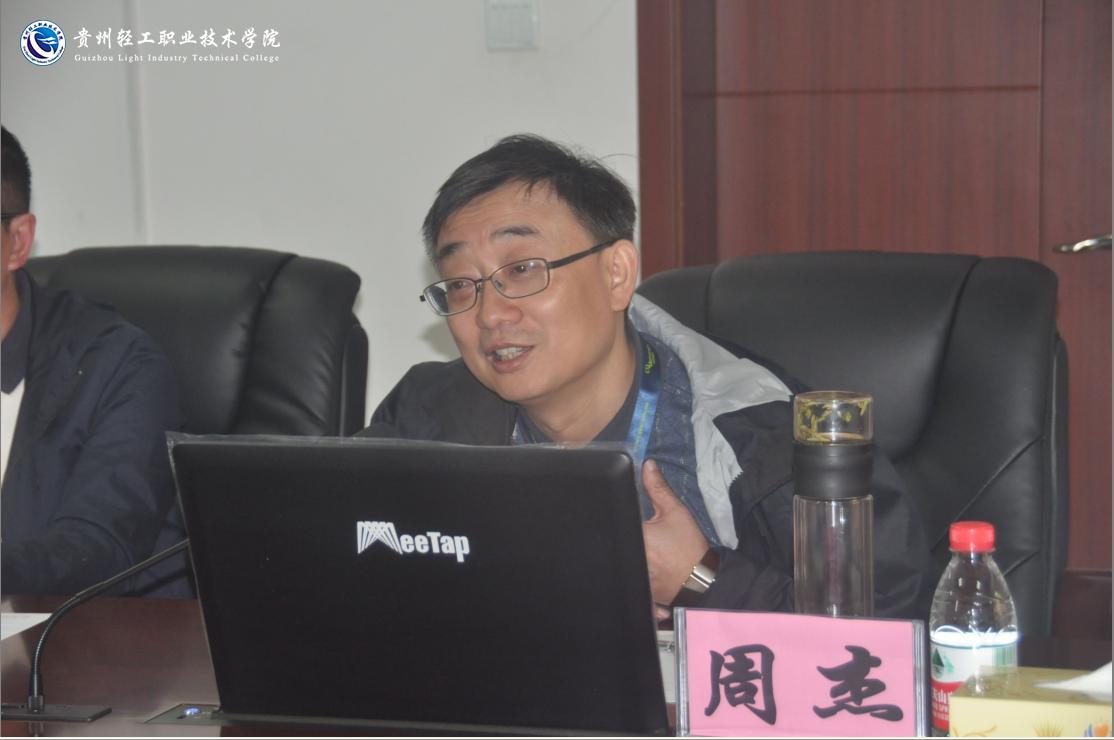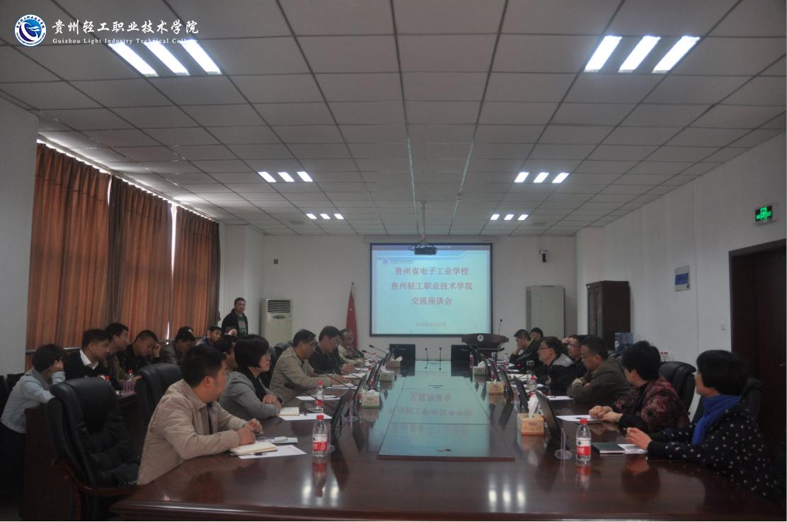 参观结束后,双方在行政楼第一会议室召开了交流座谈会,院长周杰对学院近年来的发展及办学成效作了介绍;贵州省电子工业学校校长廖智勇介绍了贵州省电子工业学校当前的办学情况及发展方向。最后,双方就中高职招生就业模式、中高职专业建设及教学衔接、教育教学考核、专业建设和开发、校园门户网站开发建设、绩效考核、学生管理、后勤保障等相关工作进行了对口交流。
