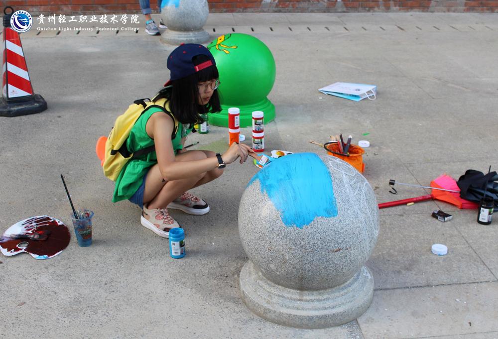 5月10日,艺术设计系组织开展2016年“为轻院添彩,为青春增色”活动,艺术设计系2014、2015级各班学生代表及系团总支学生会数百名学生在艺术设计系杨佳颖老师、杨义老师的带领下为学院井盖进行涂鸦绘画创作,艺术设计系学子结合自己的所学专业绘画知识,为呆板木讷的井盖穿上了青春靓丽的外衣。