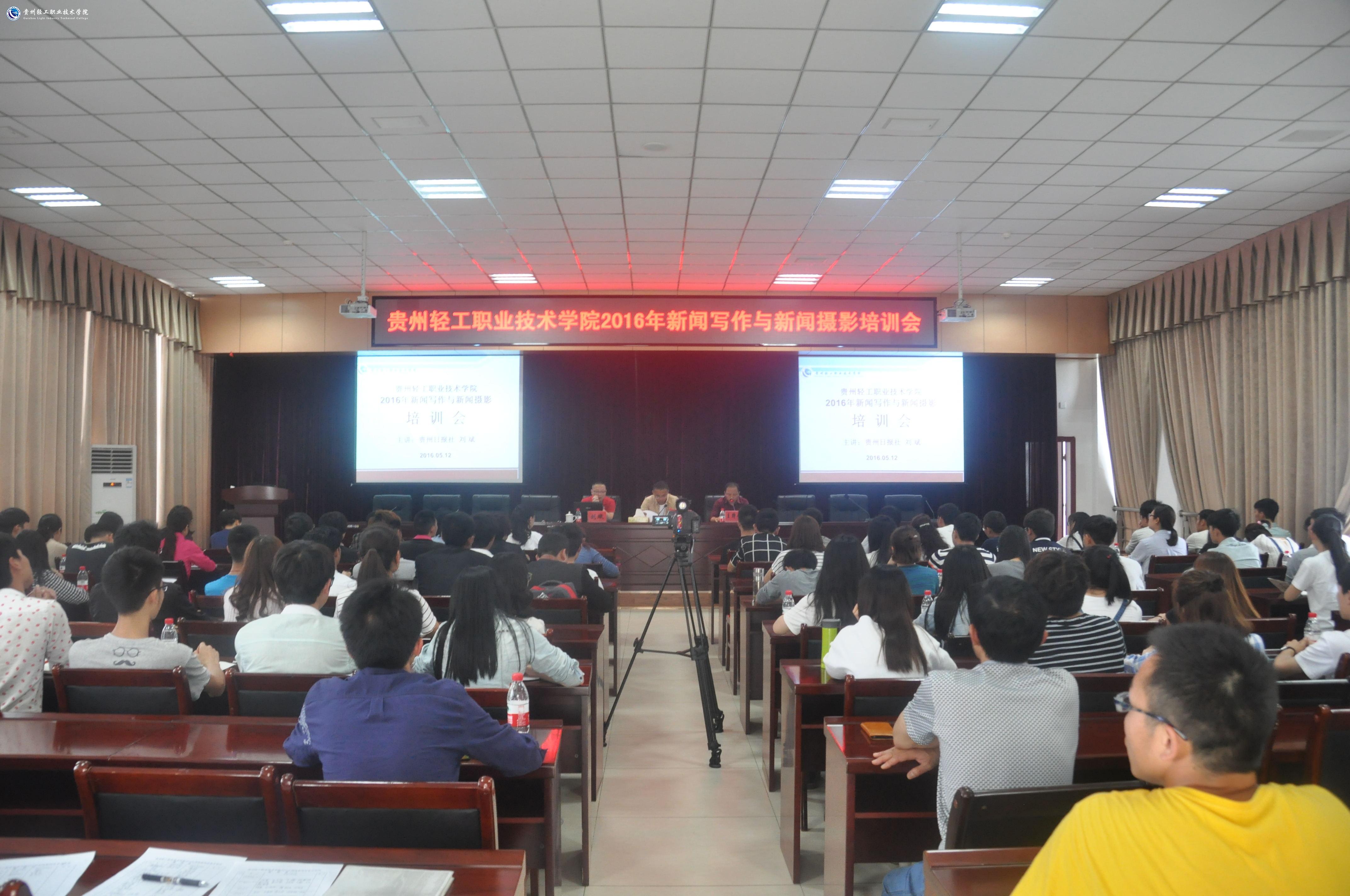 5月12日下午,学院特邀贵州日报社主任编辑刘斌在行政楼第三会议室开展了2016年新闻写作与新闻摄影培训。学院党委副书记杜平出席会议并讲话;各部门宣传工作分管领导、网络信息联络员、院报记者团学生记者、院团委宣传部(新兴媒体)学生干部及各系学生干部代表共计100余人参加。