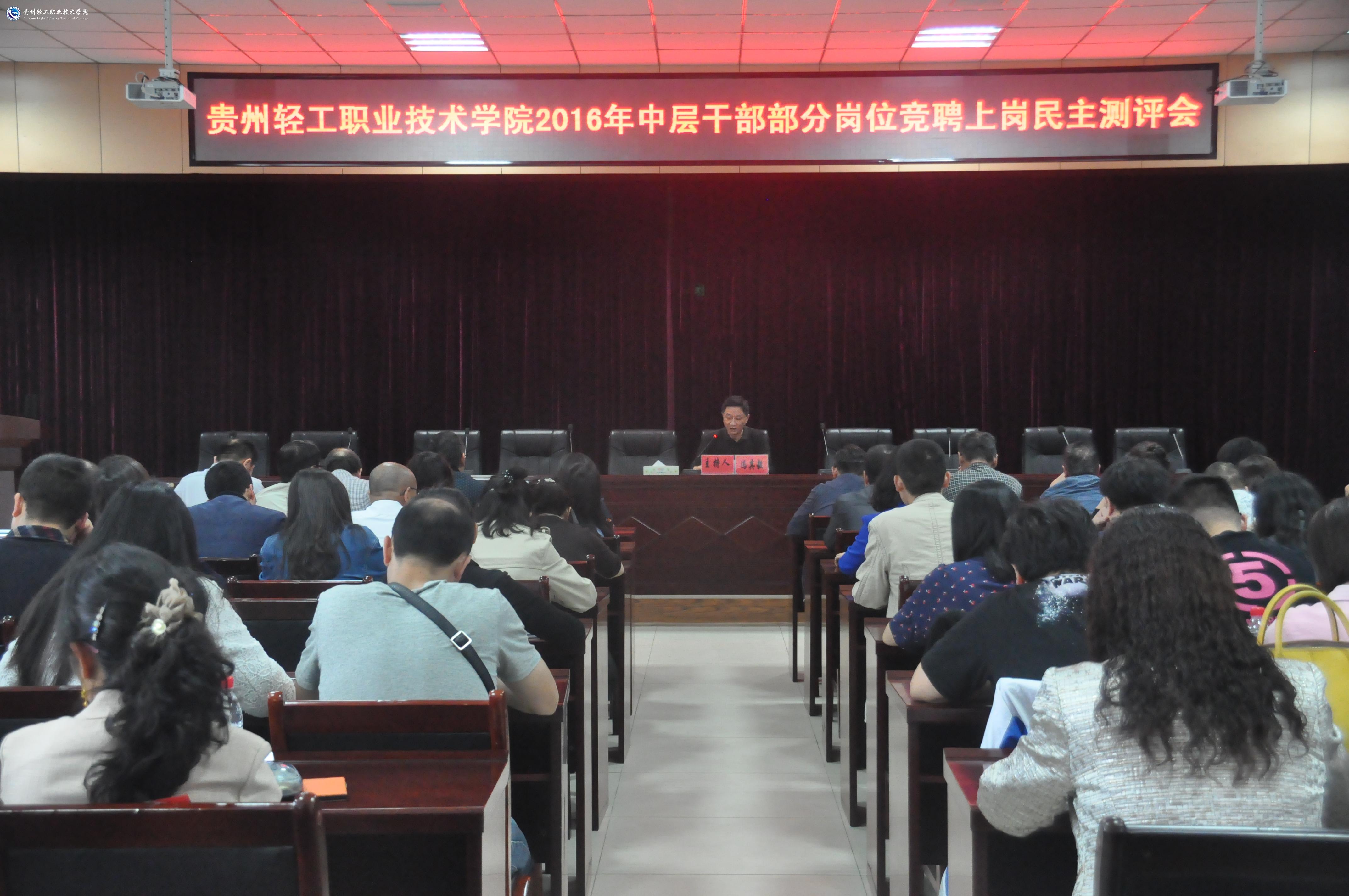 5月16日,学院在行政楼五楼会议室召开2016年中层干部部分岗位竞聘上岗民主测评会,对报名竞聘的12名同志进行民主测评。学院党政领导、副科级以上干部、高级职称人员代表、民主人士代表和设岗部门、竞聘人员所在部门教职工代表参加测评会。