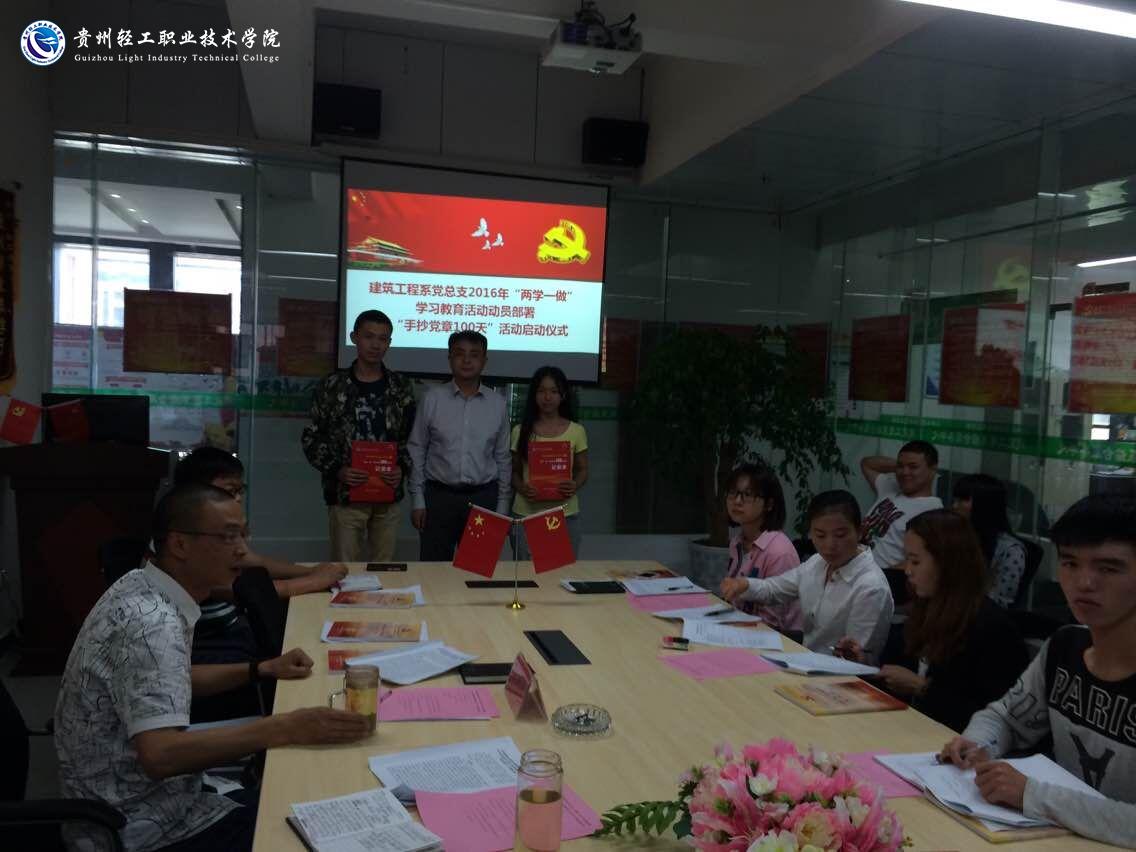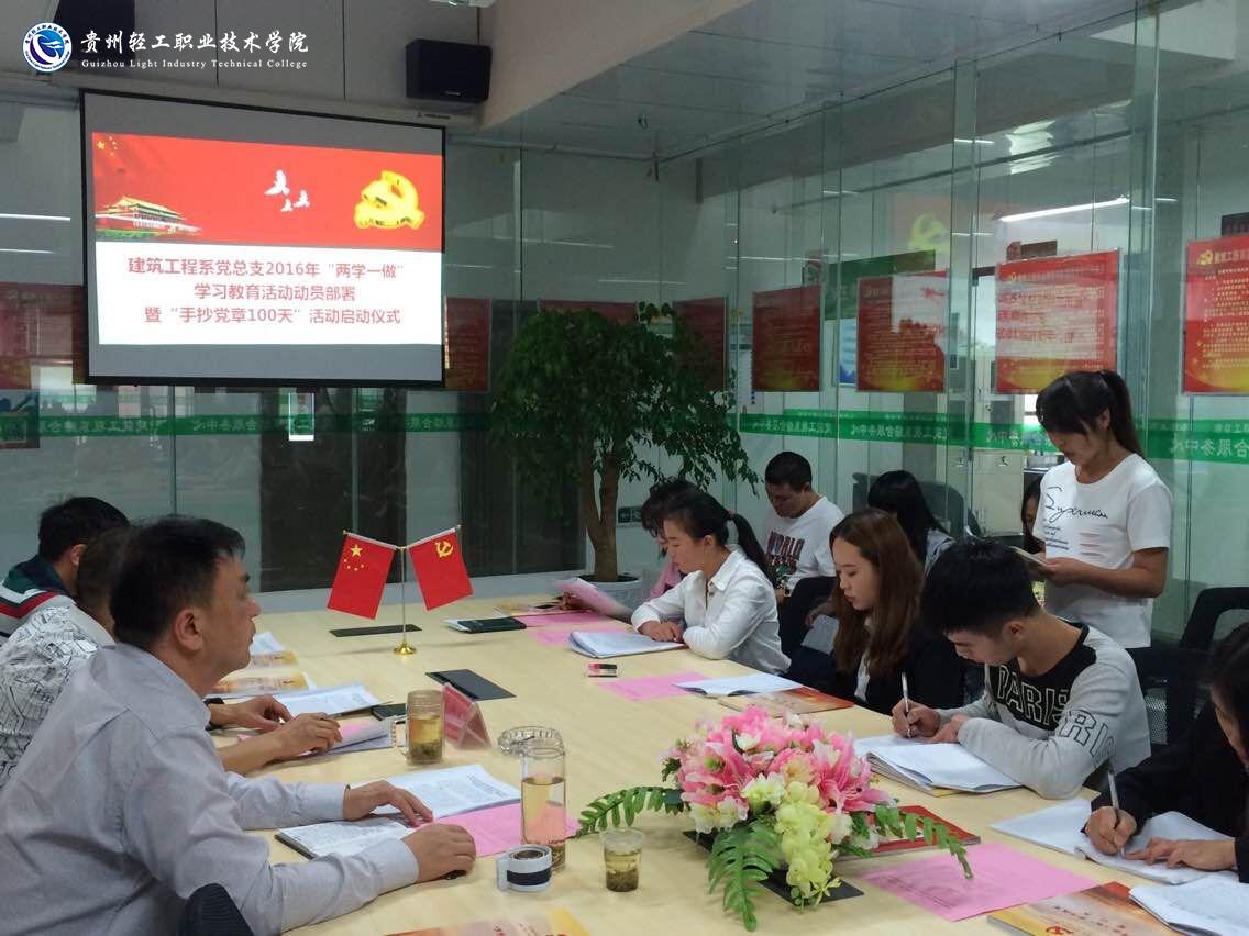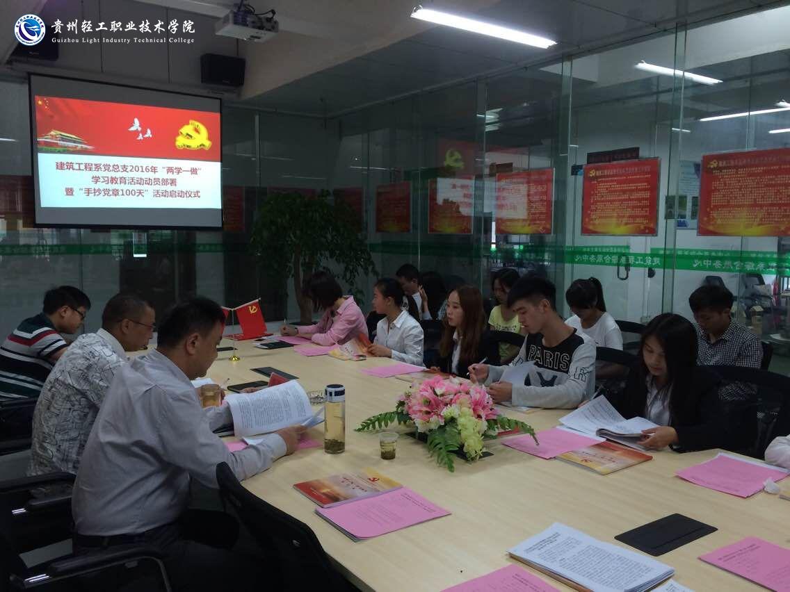5月17日下午,建筑工程系党总支在系党员活动室召开了“两学一做”学习教育动员部署会暨“手抄党章100天”活动启动仪式。学院纪委书记董平及我系全体党员参加了会议。会议由建筑工程系党总支书记李五祥主持。