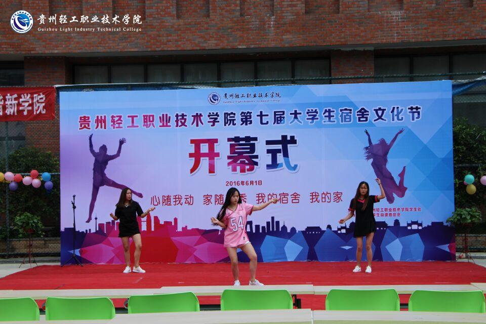 为了丰富我院学生的宿舍文化生活,培养学生的良好行为习惯,增强学生的环保意识。学生处于 2016 年 6 月 1 日下午4:30在学院二食堂后篮球场举办“贵州轻工职业技术学院第七届大学生宿舍文化节”。院党委副书记杜平、学生处处长暨星球、相关职能处室负责人、各系党总支书记、东吴物业公司袁经理、学生管理科科长及辅导员参加活动开幕式。