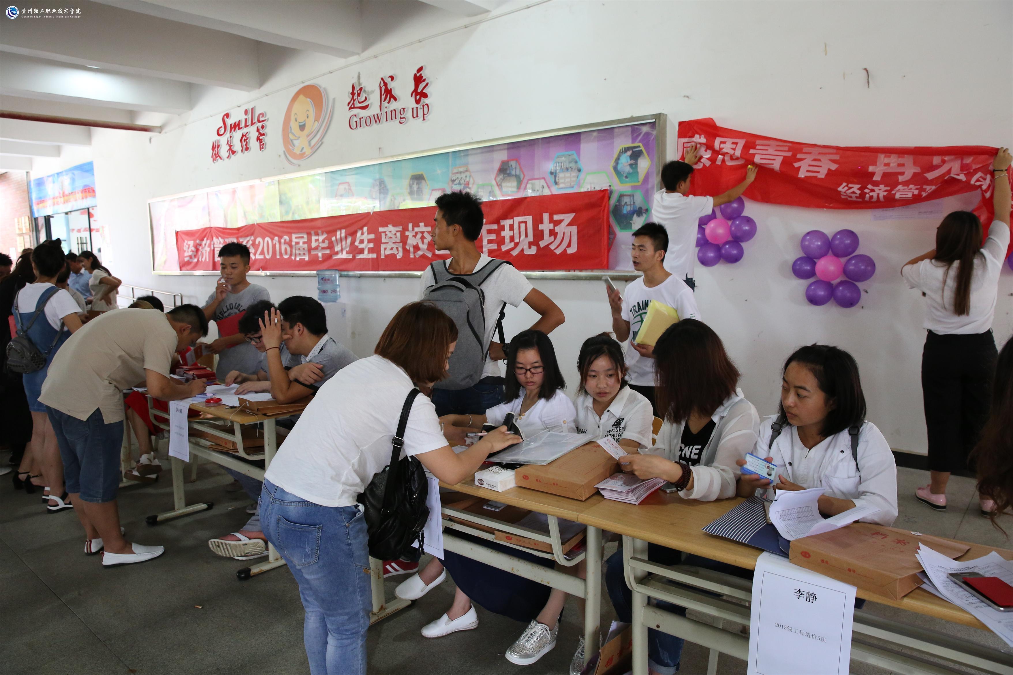 6月21日上午,由学院学生处牵头,会同财务处、教务处、资助管理中心、宣传统战部、实训中心、各系部及后勤管理部门在学生活动中心专设服务站,为2016届毕业生集中办理离校手续。