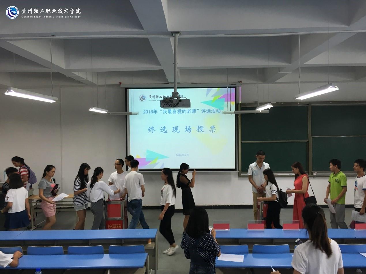 6月24日下午2:00,贵州轻工职业技术学院第二届“我最喜爱的老师”评选活动现场投票在3106阶梯教室进行。作为师德师风建设的一项重要内容,本次“我最喜爱的老师”评选活动经过了班级推荐、系部推荐和网络投票等环节,共有21名教师作为候选人进入现场投票环节。