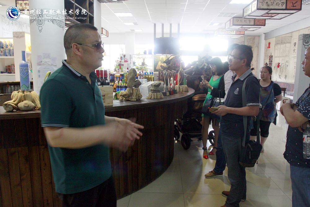 “山典水”水族文化公司总经理朱大祥首先向周杰院长介绍了公司基本情况和我院在此顶岗实习学生的工作情况。随后,周杰院长一行看望了在公司实习学生,参观了水族文化工艺品展厅,进一步了解了“山典水”水族文化公司发展思路,双方就民族文化发掘和校企合作方面初步达成了合作意向。