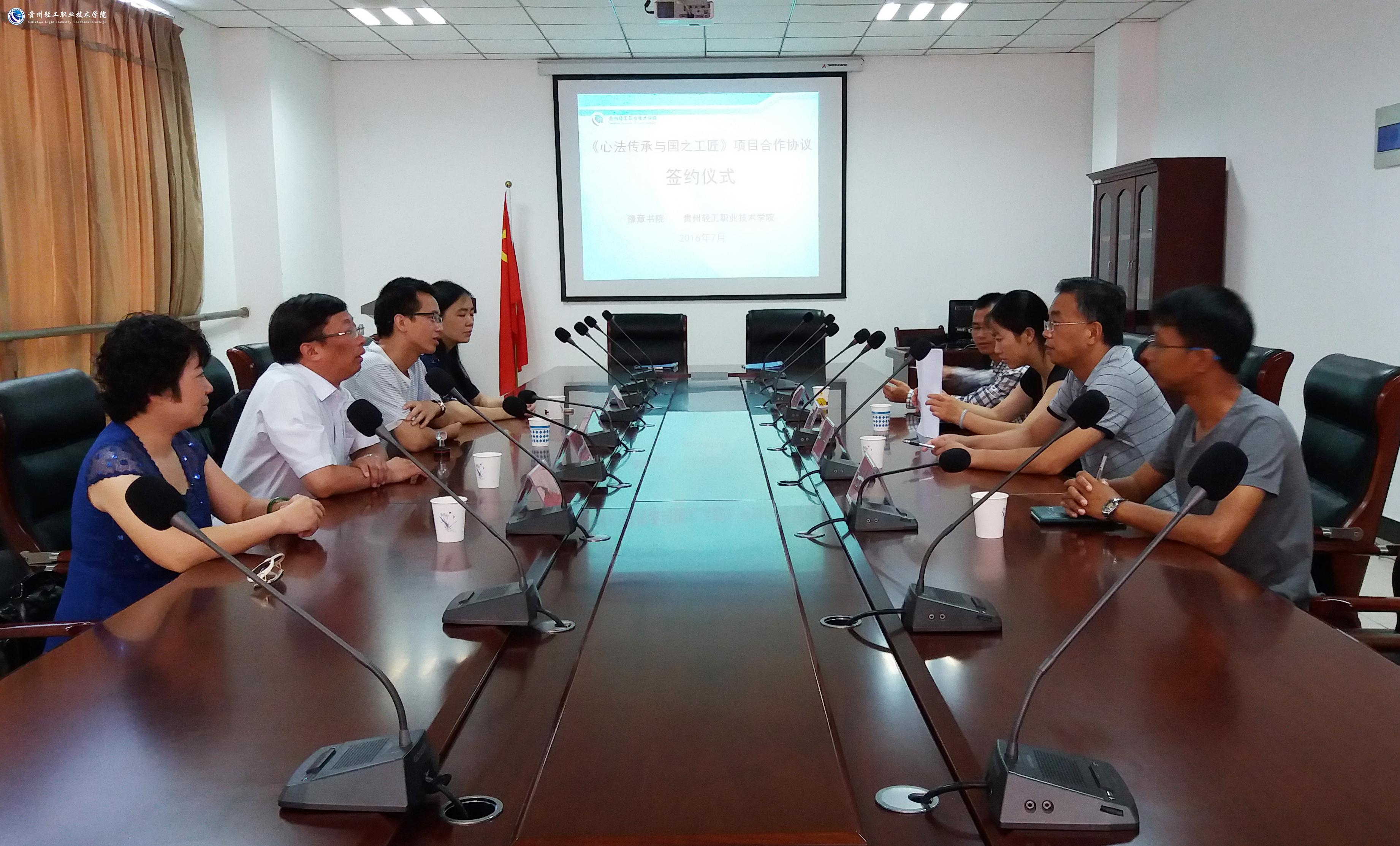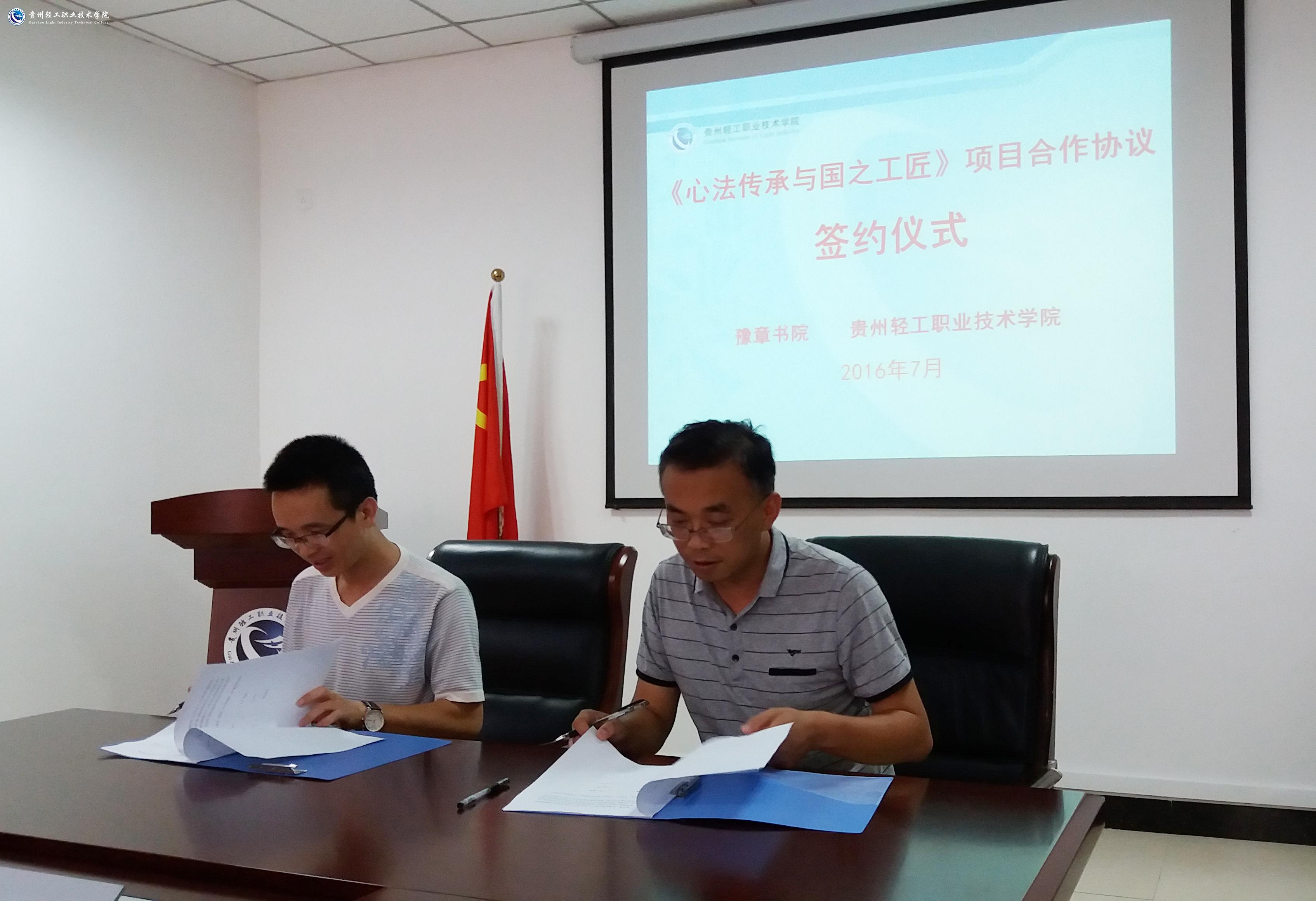 7月18日上午,学院与贵州豫章书院“心法传承与国之工匠”项目合作协议签约仪式在行政楼第二会议室举行。贵州豫章书院院长罗国淮,《贵州年鉴》副主编陆曙光,贵州豫章书院杨泓、谈波,学院党委副书记杜平,学生处处长(团委书记)暨星球,学生处副处长张庚斐,院团委副书记许旺央等出席签约仪式。签约仪式由学生处处长(团委书记)暨星球主持。