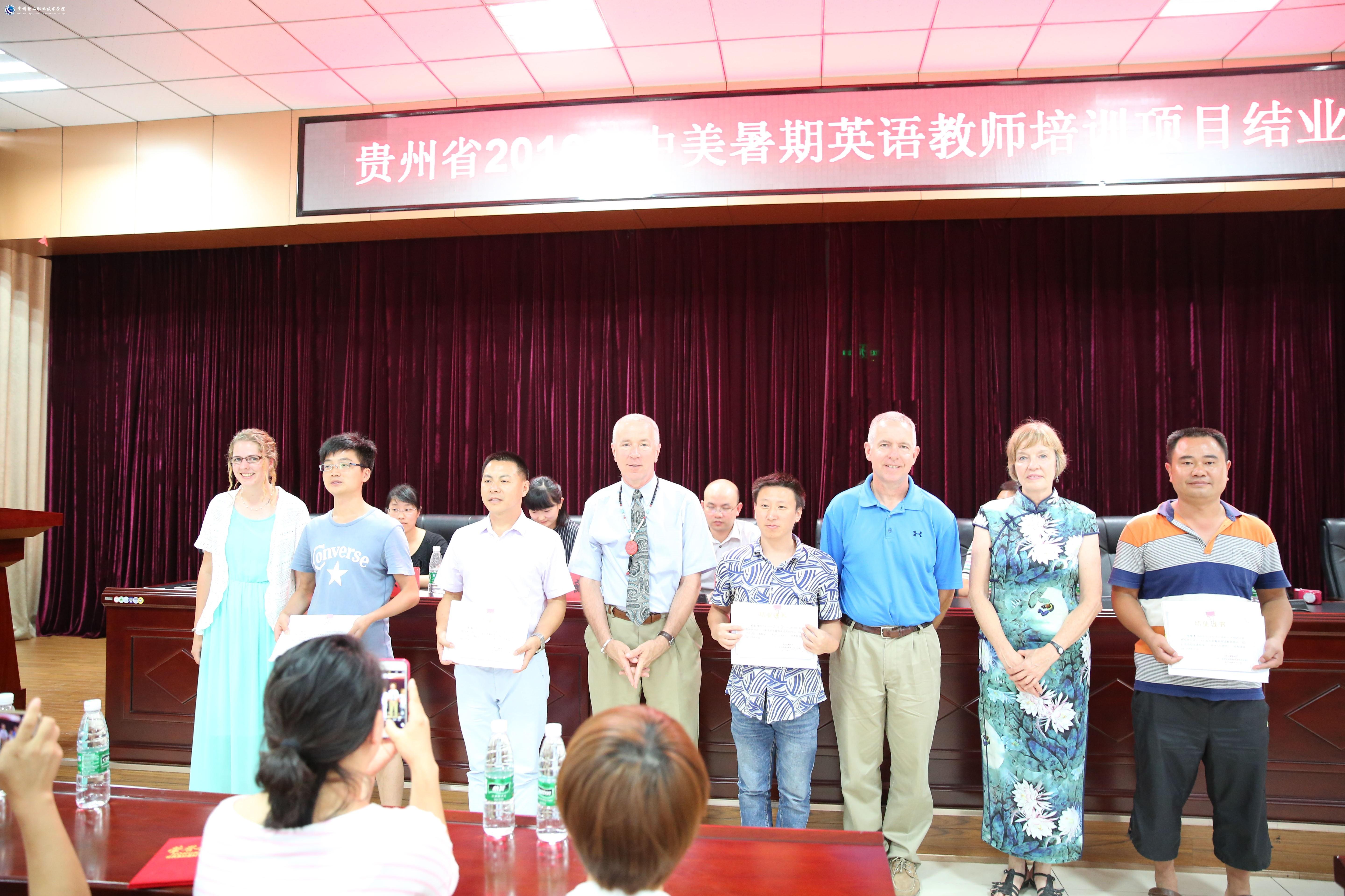 美国英语学会的外籍教师代表Pauler Shirley总结了此次培训的成果、经验以及对培训教师未来的期望;贵州省教育国际交流中心STP项目负责人陈小飞对我院为本次STP项目的顺利实施所做的工作表示感谢,同时,指出培训时间虽短,但课程设置内容丰富,针对性强而又安排紧凑合理并注重理论学习和教学实践相结合,加速了各位参训教师的专业成长。贵州省教育厅教师工作处主任科员任明勇表示,希望在座的各位教师能够成为我省中学英语教育的最有力的支撑,把学到的东西运用到实际的教育教学中去,最终助益于我省的广大学生。同时,将来还会举办各类教师培训项目,把最优质的教育资源、教育理念引进贵州,推动贵州英语教育事业的发展。