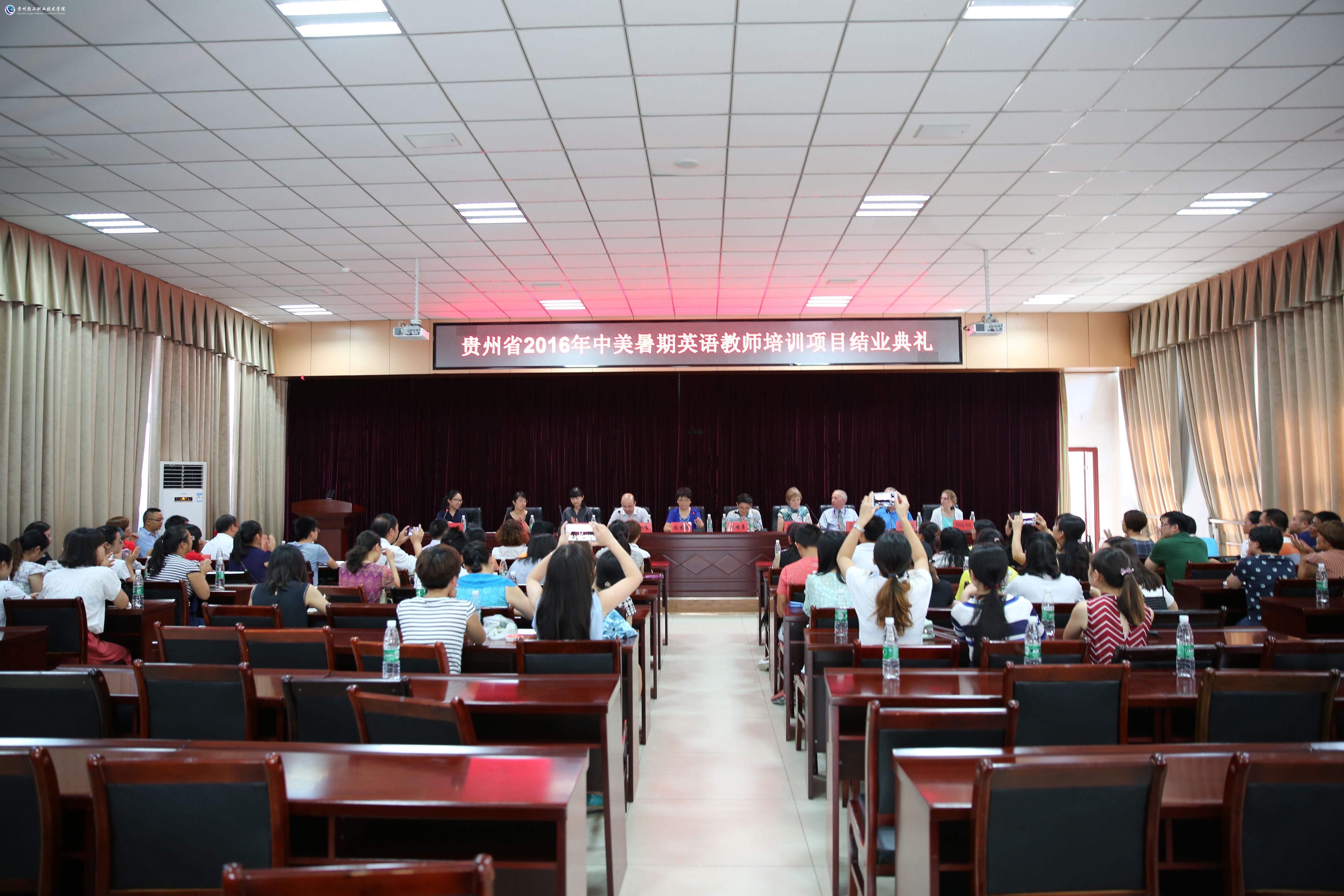 8月1日,贵州省2016年度中美暑期中学英语教师培训项目结业典礼在我院顺利举行。经过为期四周的培训,来自贵州各市州县的78名中小学英语教师学员均完成本次项目的全部课程,顺利结业。学院党委委员、副院长陈秀娟,贵州省教育厅教师工作处主任科员任明勇、贵州省教育厅教育国际交流中心STP项目负责人陈小飞、付薇参加了结业仪式。