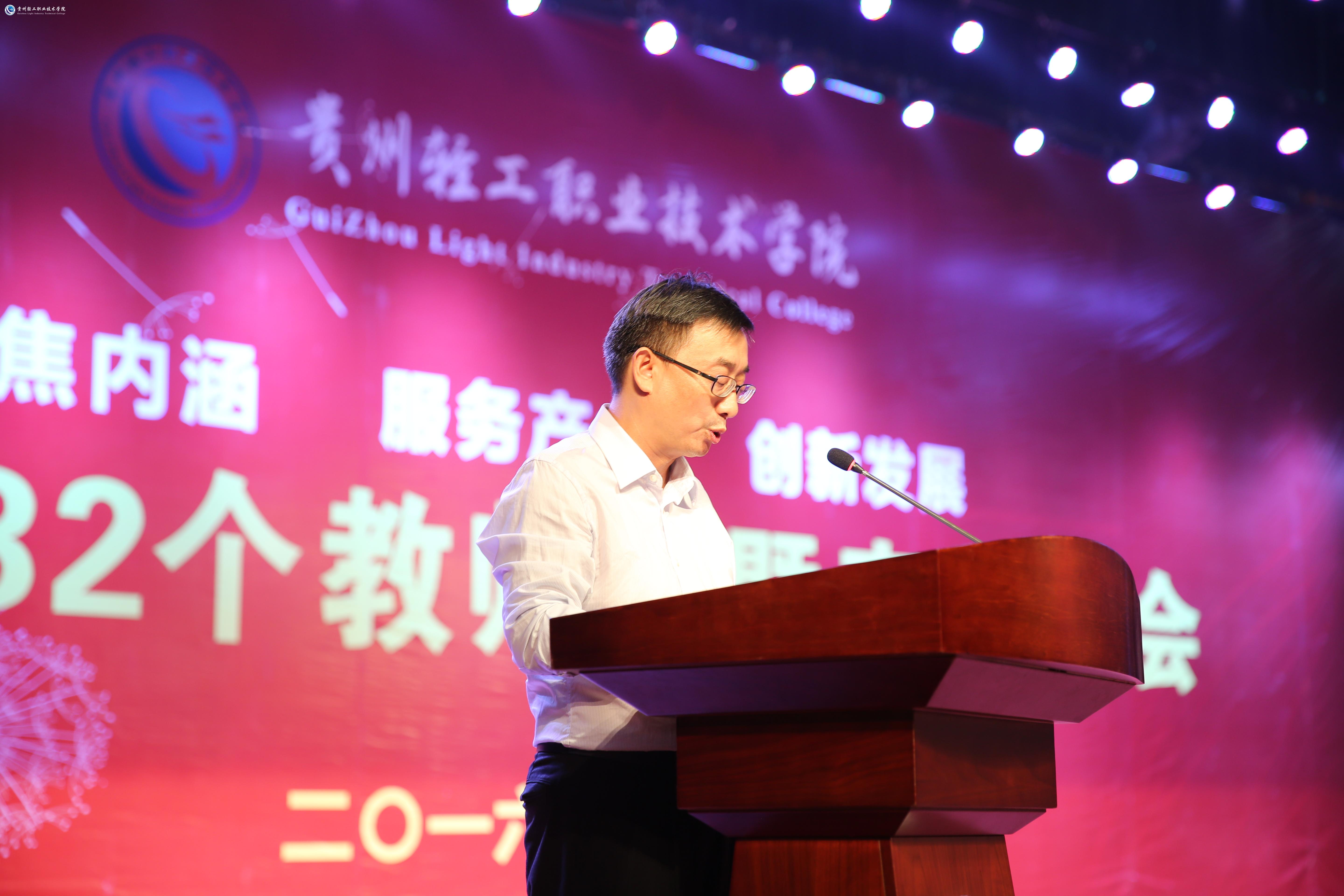 院长周杰同志在讲话中代表学院党委、行政向全体教职工、受表彰的先进集体和个人、以及离退休教师致以最诚挚的问候和崇高的敬意;回顾了过去一年学院取得办学成效,对今后一个时期的工作谈了几点意见。一是坚持“绿色”发展理念,进一步营造风清气正的育人环境,引领教育新风尚;二是坚持“共享”发展理念,坚持教育公平,进一步深入实施教育精准扶贫;三是坚持“协调”发展理念,进行结构性调整,进一步提升内涵建设;四是坚持“开放”发展理念,进一步办好国际学院;五是坚持“创新”发展理念,创新观念、体制和机制,不断注入改革动力活力。通过不断的努力和奋斗,最终实现把我院全面建成“省内一流、全国有影响的高水平高职院校” 的奋斗目标!