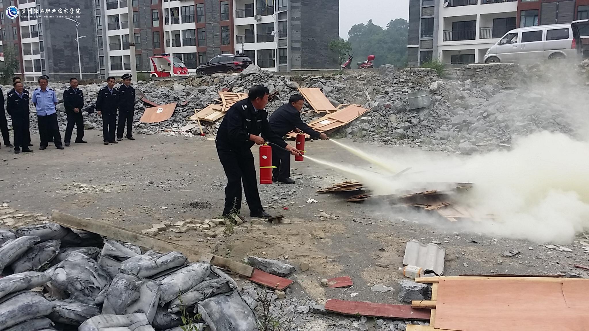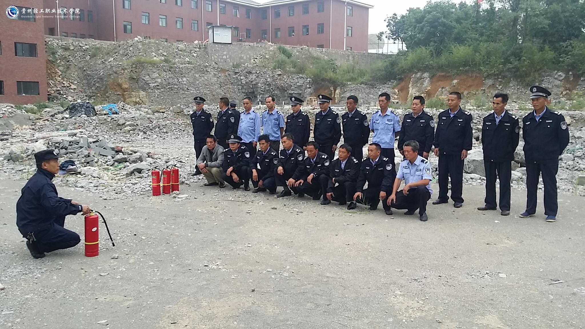 在演练中,保卫处消防科科长阮长河同志传达了花溪大学城高校消防安全专项会议精神,并对全院消防安全隐患排查情况做出通报。对保安公司及安保人员提出要求:第一、要正确掌握灭火器和消防水带的使用方法;第二、安保人员发现火情时要及时上报,并积极参与救援行动;第三、安保人员需全体加入贵州轻工职业技术学院义务消防队。